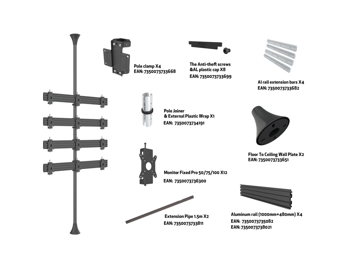 Multibrackets M Floor to Ceiling Mount Pro MBFC3X4U-F100 is a signage solution composed from Pro Series Parts - ready to be installed.