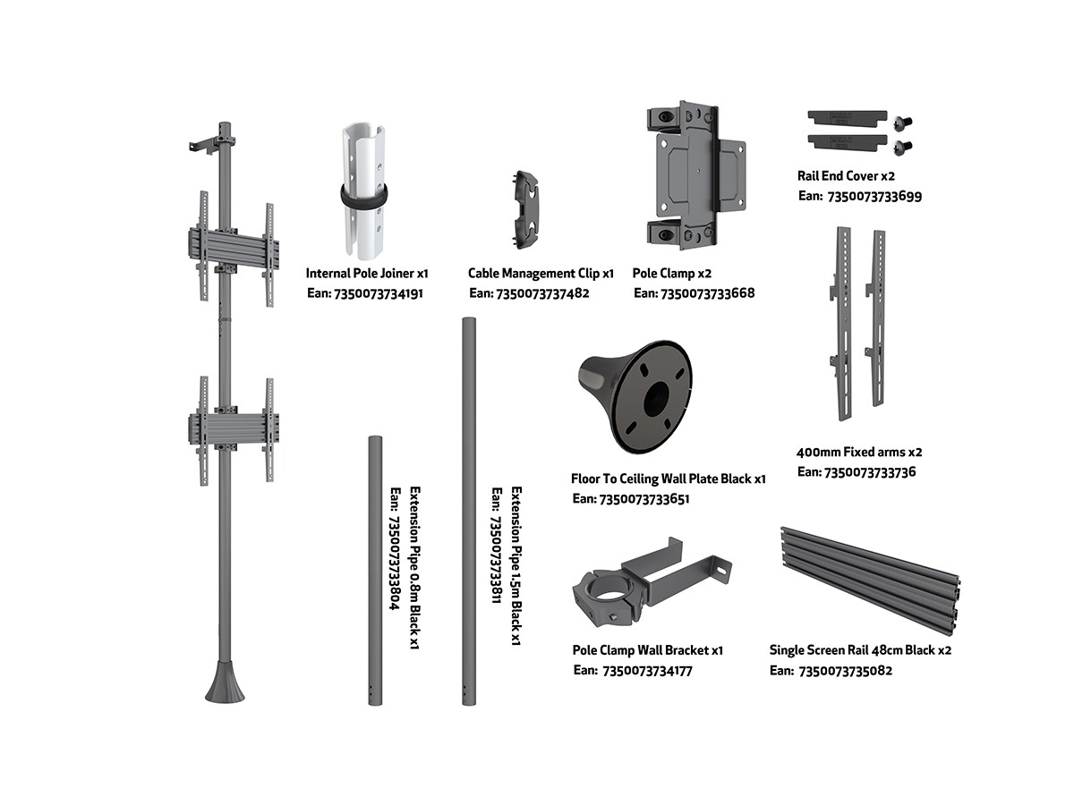 Product code:M Floor to Wall Mount Pro MBFW2U - Ceiling mount for LCD display, steel, 3m length, 2 screens, single side, fixed arms, VESA Max 600x400 - screen size: 40"-65" - black