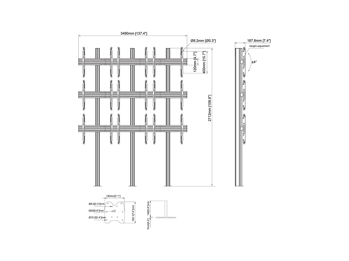 Multibrackets 7350105213441 M Floormount Column Pro 3x3 MBFM3x3U 270 Micro Adjustable