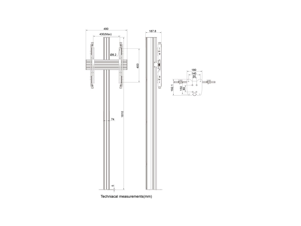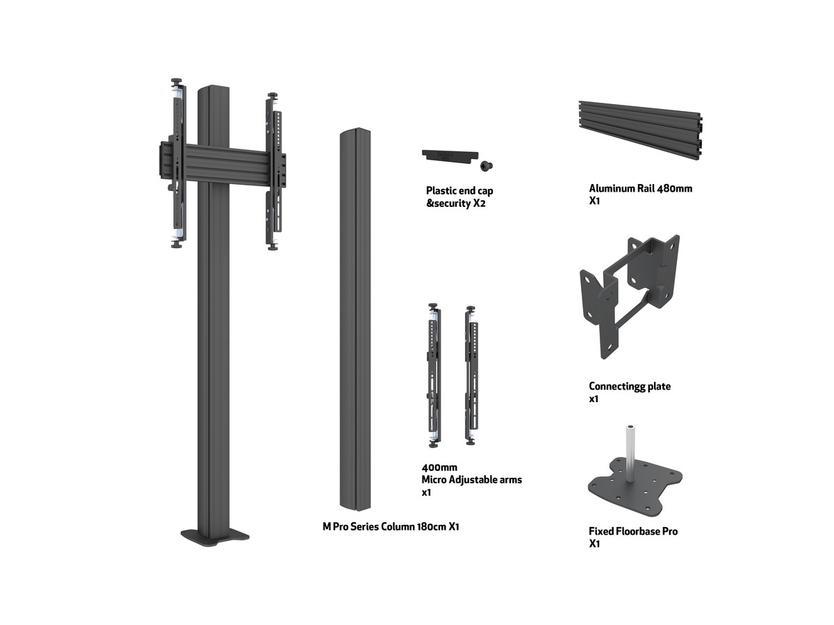 Product code:M Floormount Column Pro MBFC1U 180 Micro Adjustable - Floor column mount for LCD display, steel, 1.8m height, 1 screen, single side, micro adjustable arms, VESA Max 400x400 - screen size: 32"-65" - black
