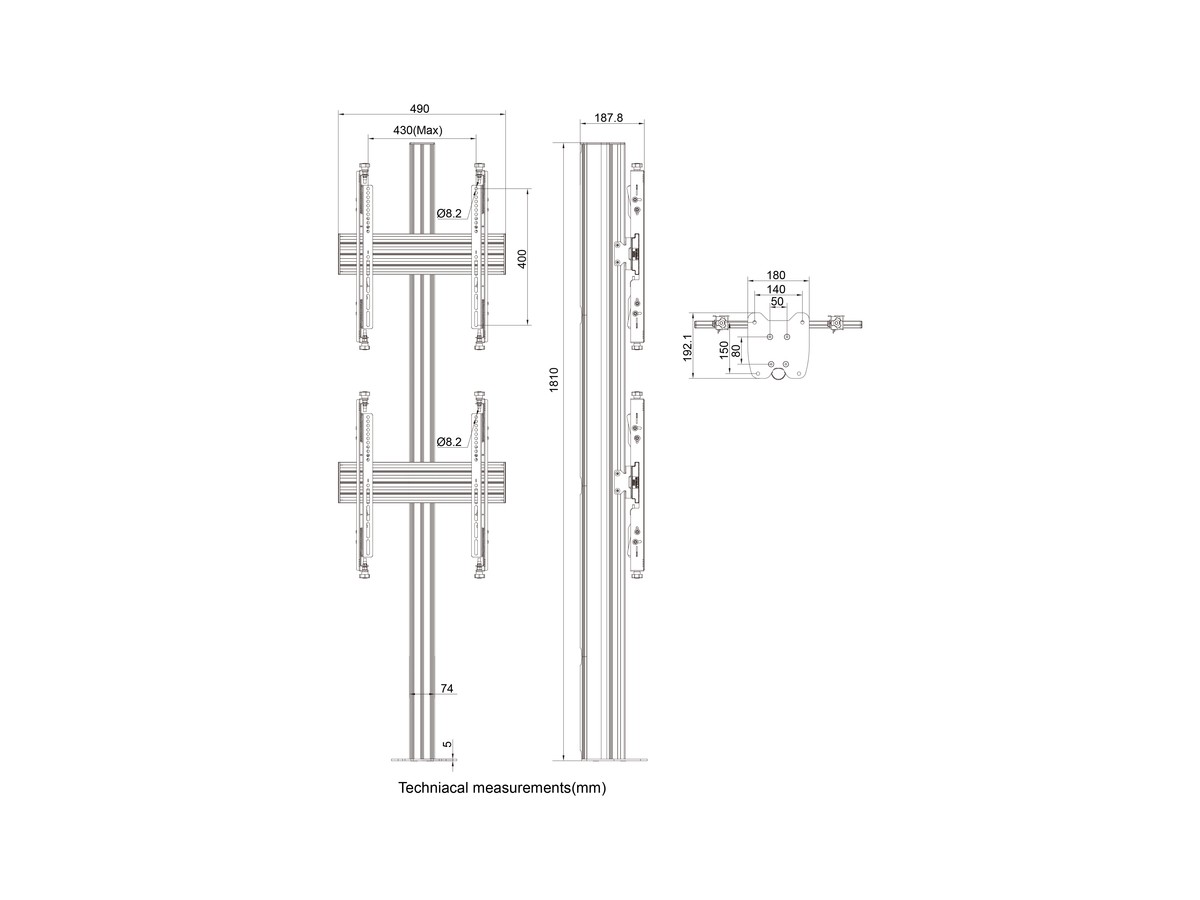 Product code:M Floormount Column Pro MBFC2U 180 Micro Adjustable - Floor column mount for LCD display, steel, 1.8m height, 2 screen, single side, micro adjustable arms, VESA Max 400x400 - screen size: 32"-65" - black