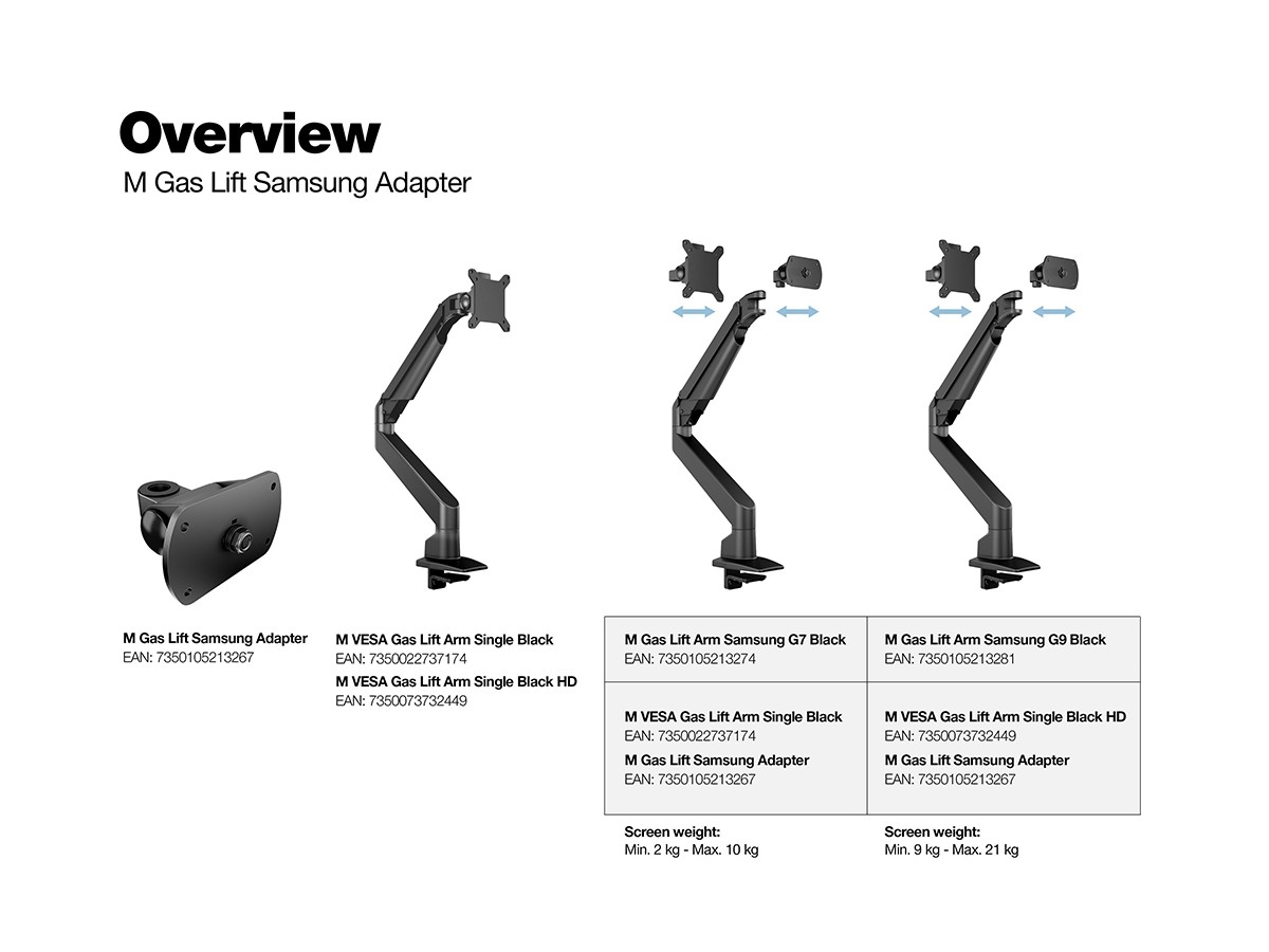 Multibrackets 7350105213281 M Gas Lift Arm Samsung G9 Single Black