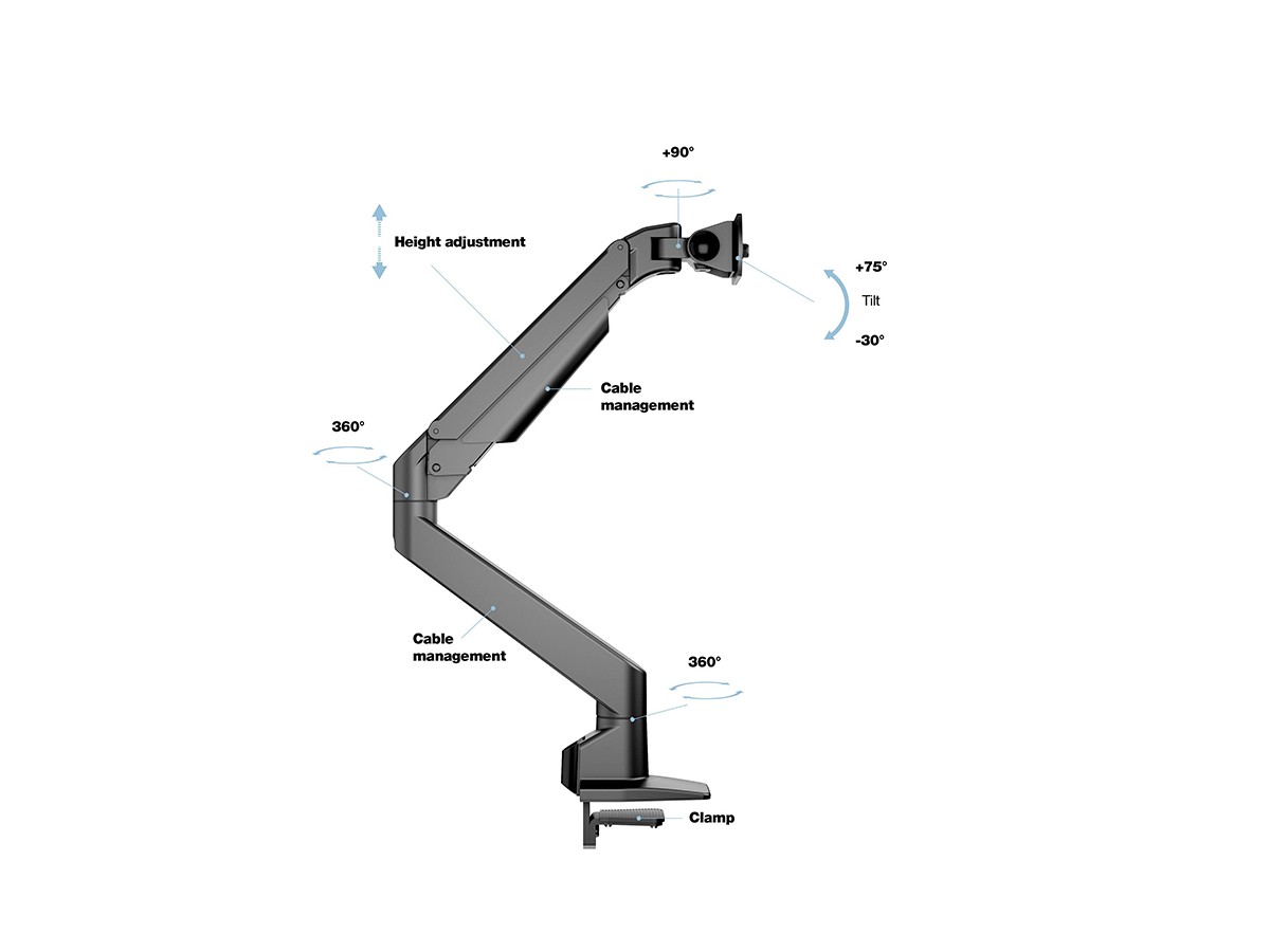 Product code:Multibrackets M VESA Gas Lift Arm Samsung Odyssey G9 Black - Mounting kit (articulating arm, desk clamp mount) for Samsung Odyssey G9