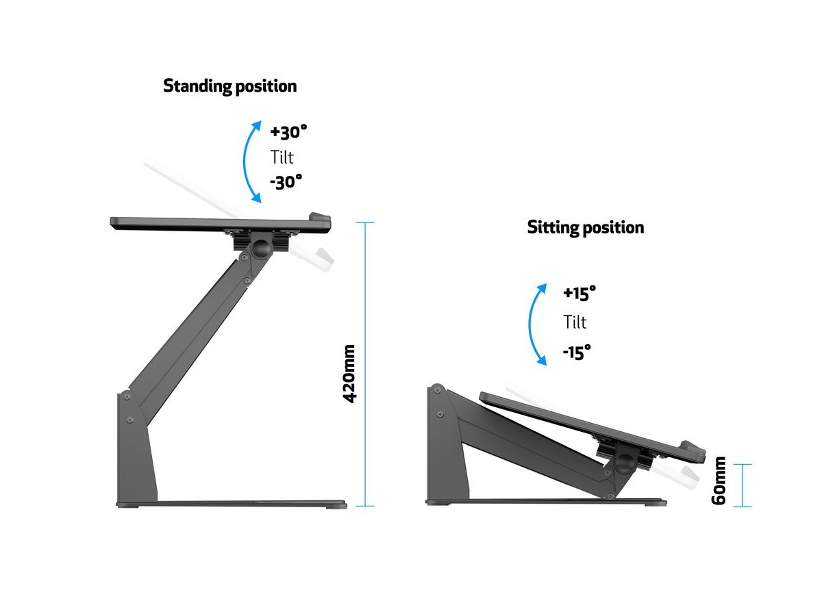 Product code:M Laptop Workstation Black - Stand for Laptop / Notebook - table 580x320 mm - height adjustable 60-420 mm, table-top Laptop Riser