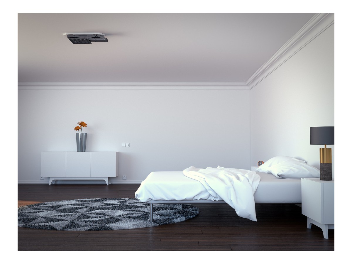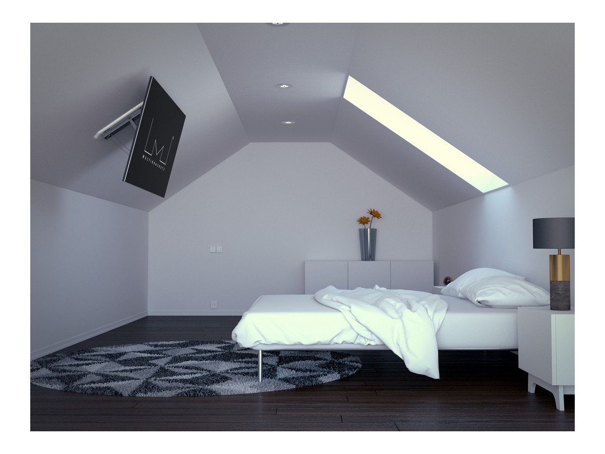 - The ideal solution for a ceiling or under a cabinet motorized flip down of your TV