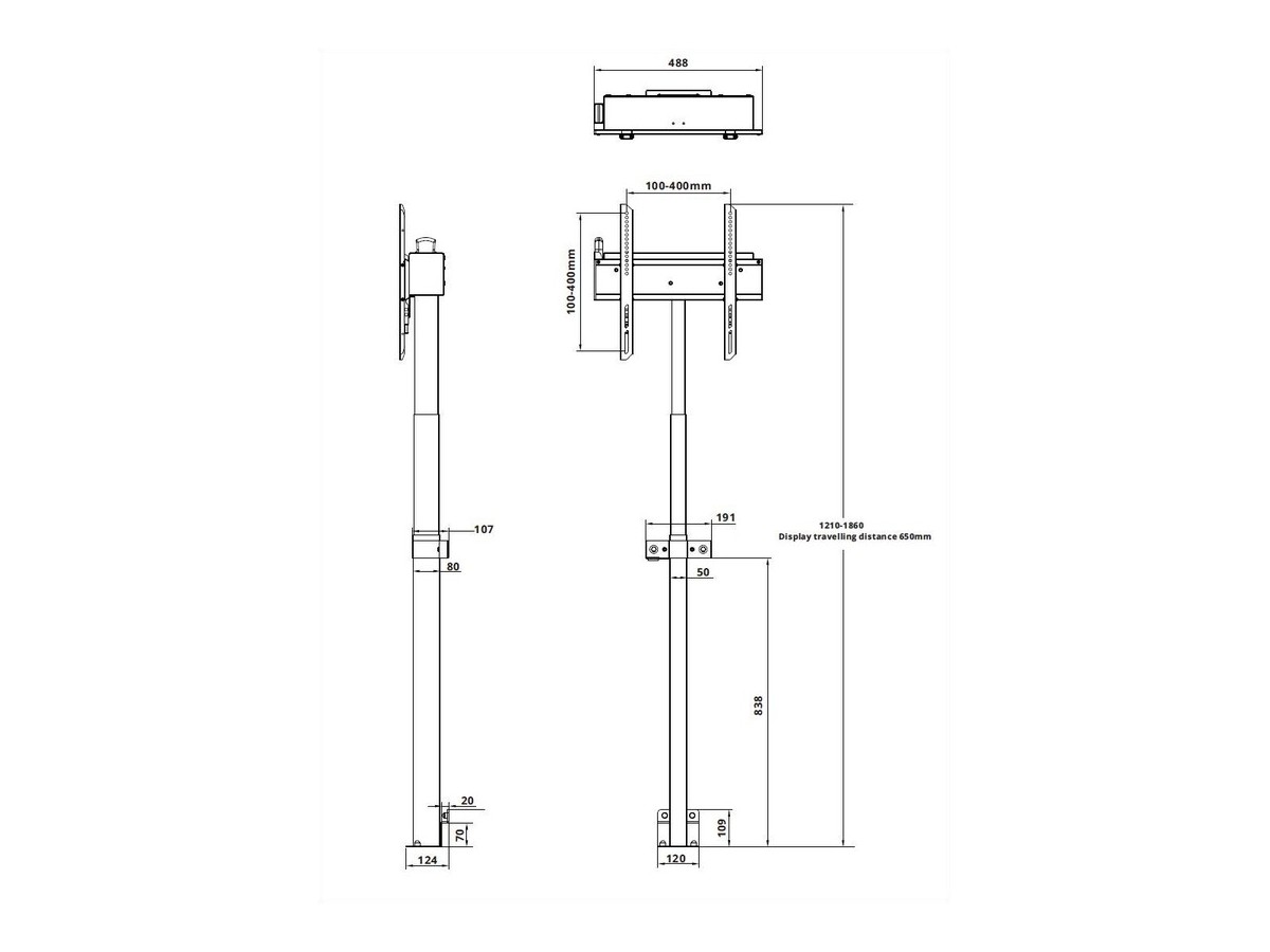 Product code:M Motorized Floormount 60kg Black - Stand kit (floor stand) for LCD TV - 32-60" - VESA 100x100 - 400x400 - max 60kg - black