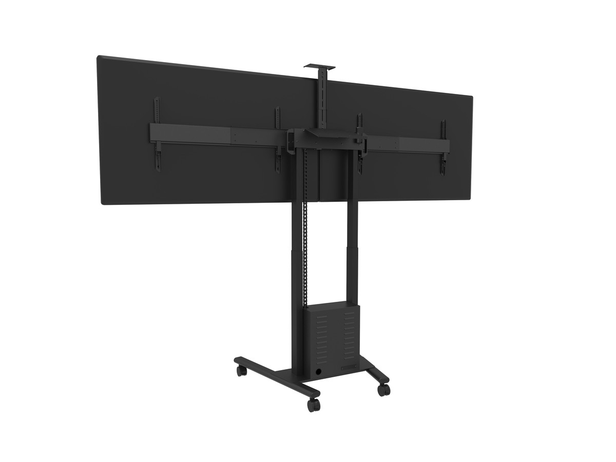 Product code:M Motorized Floorstand Dual Screen Incl cabinet & camerashelf 120kg Black - Stand kit (floor stand) for Displays - screen size: 40" - 75" - max load: 120 kg - VESA: 200x200 - 600x400 mm - black