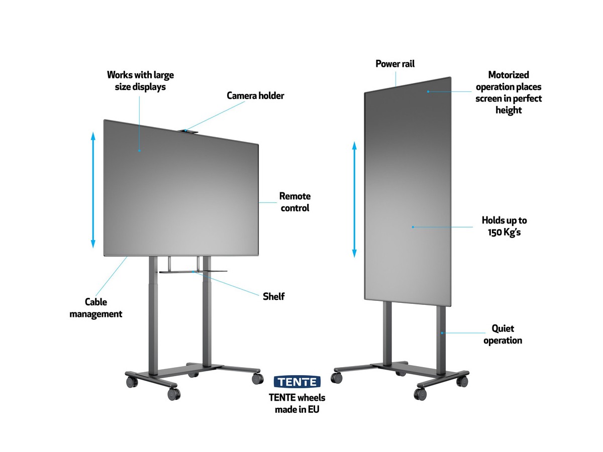 Product code:M Motorized Floorstand XL 150kg Black - Stand kit ( floor stand ) for LCD/LED TV - screen size: 42-100" - max load: 150 kg - VESA: 100x100-1000x600 mm - black