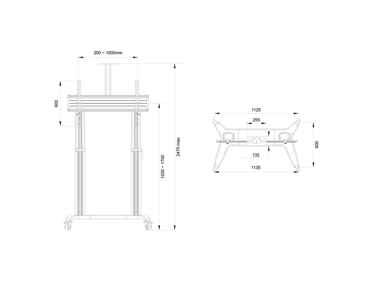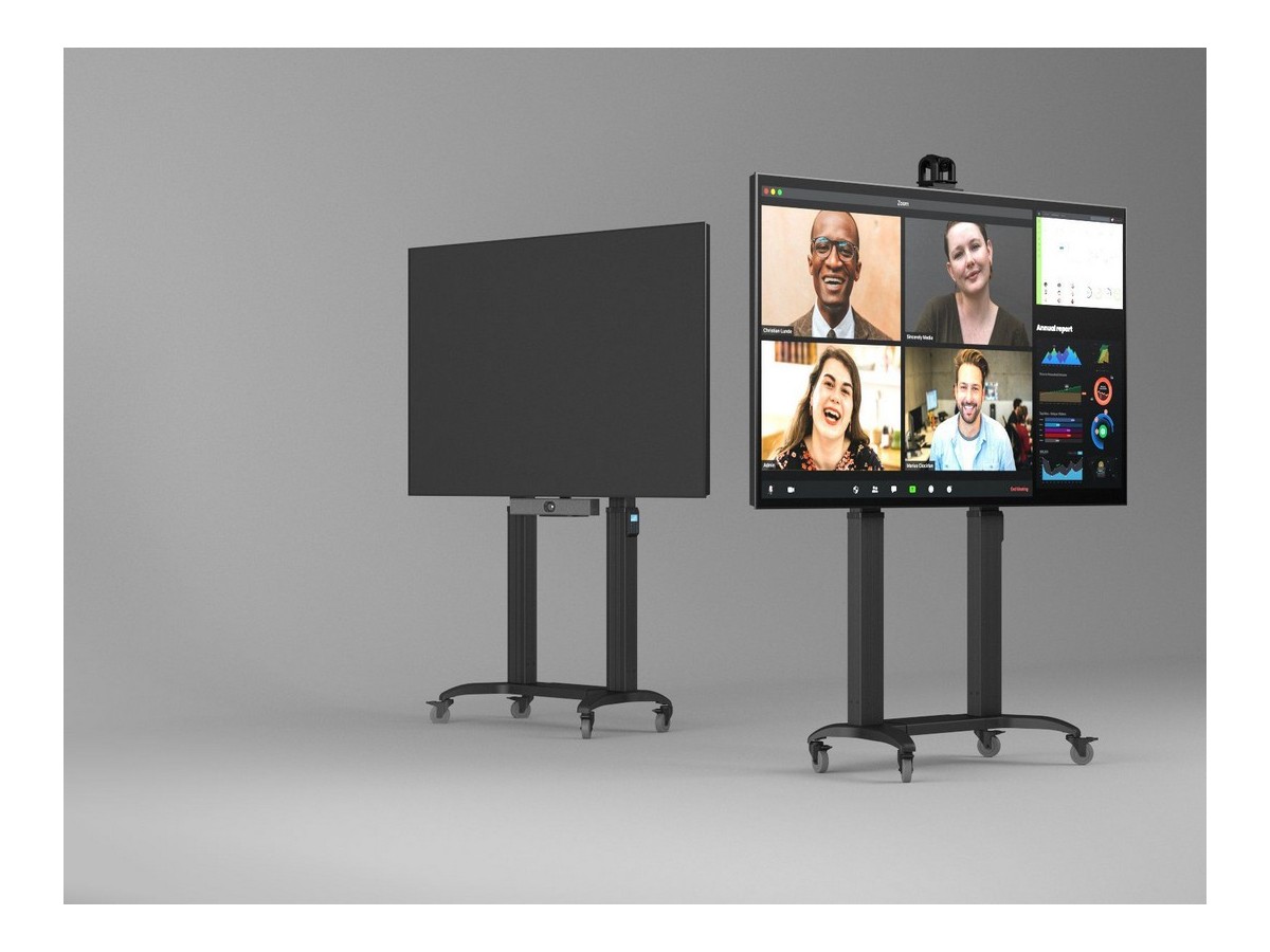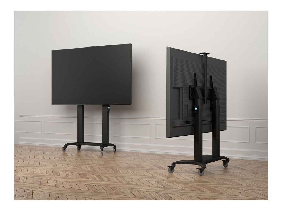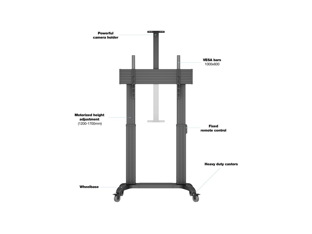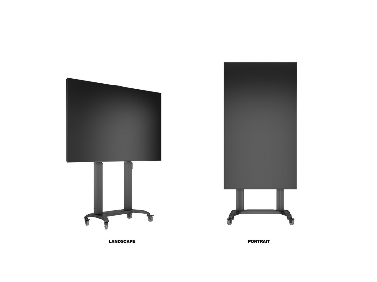 Product code:M Motorized Public Floorstand Dual Pillar 180 HD – Motorized floorstand for displays or touchscreens - aluminum - screen size: 65"-110" - max load: 135 kg - VESA: 200x200-1000x600 – 4x lockable castors - black