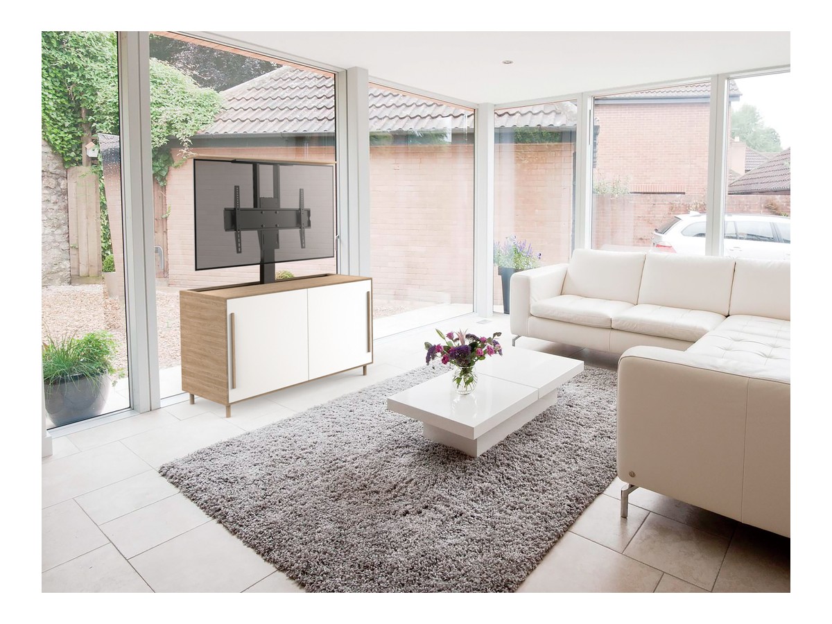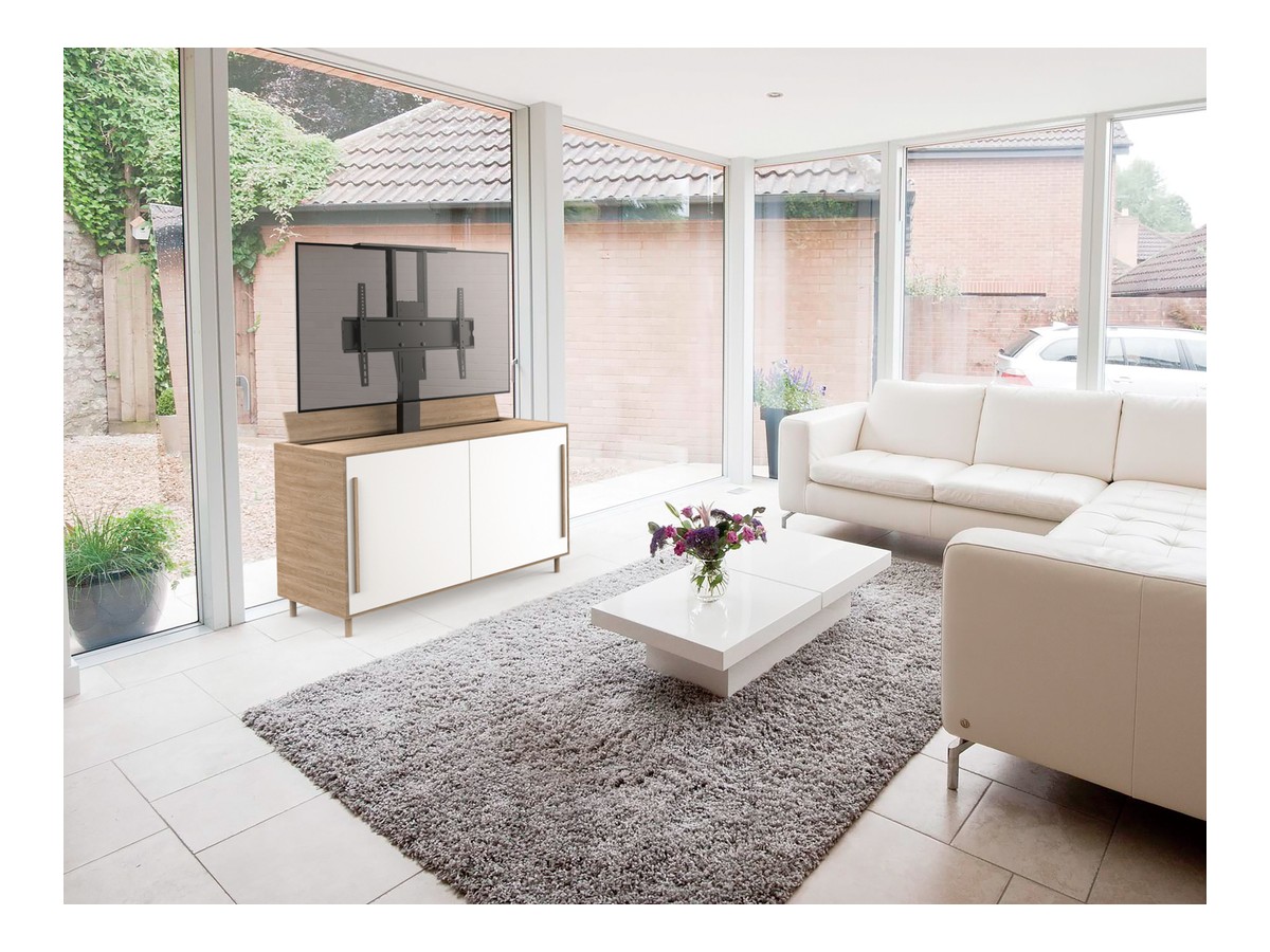 Your television or display is one of the focal points in most meetingrooms & livingrooms. With a TV lifts you give both your display and the whole room the attention it deserves. Improve your interior with a TV lift. The M Motorized TV Lift Large combines multiple telescoping lift columns into one seamless mechanism, providing great speed and extended travel. It raises screens up to 65″ in 20 seconds.