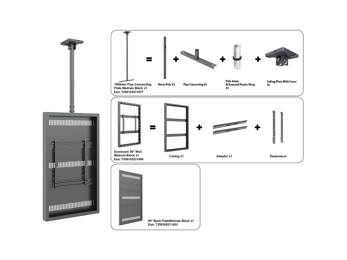 Product code:M Pro Series Enclosure 50" Ceiling Medium Black- Universal 50" display enclosure to protect from theft - design- steel cage - black