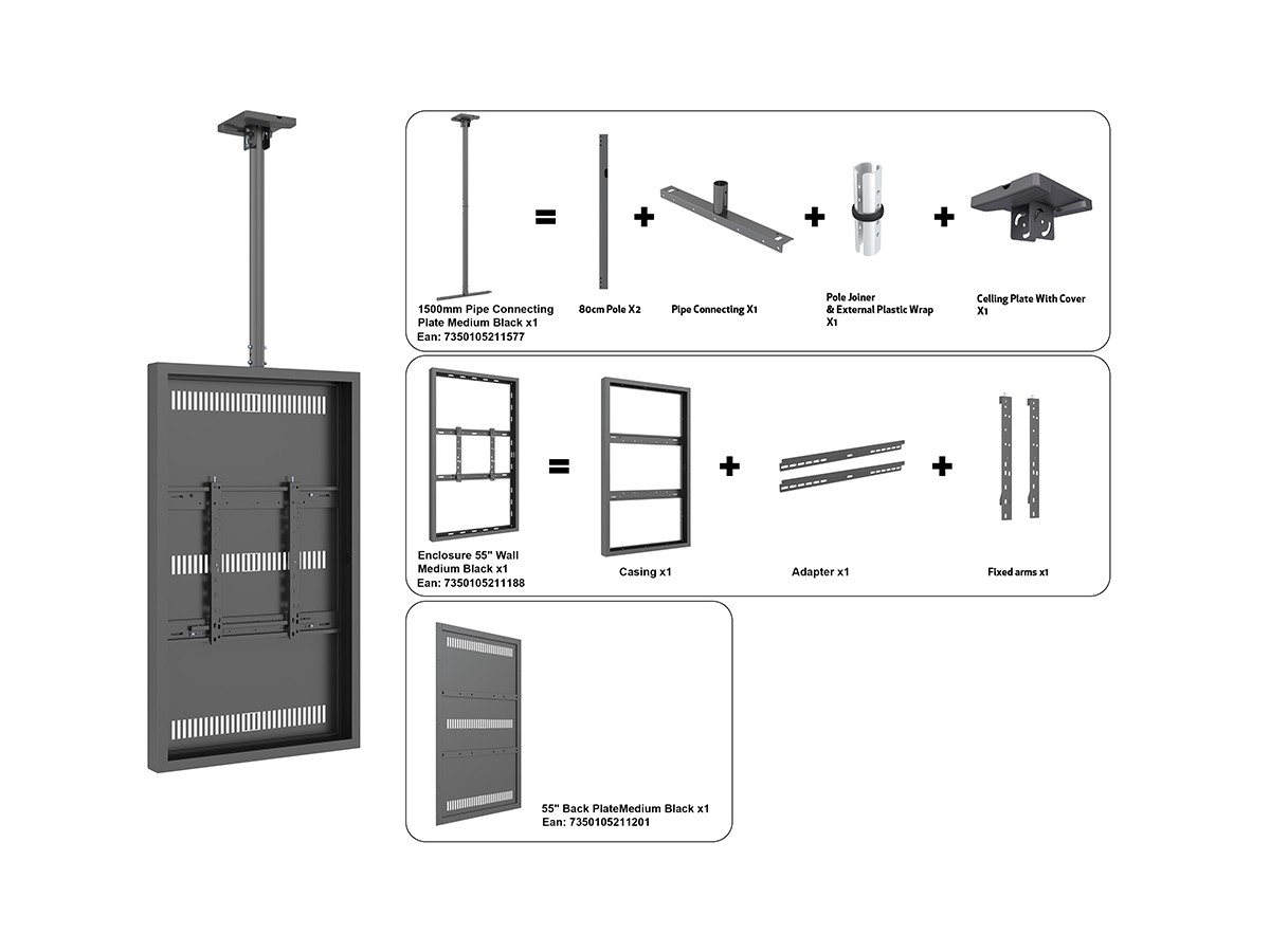 Product code:M Pro Series Enclosure 55" Ceiling Medium Black- Universal 55" display enclosure to protect from theft - design- steel cage - black