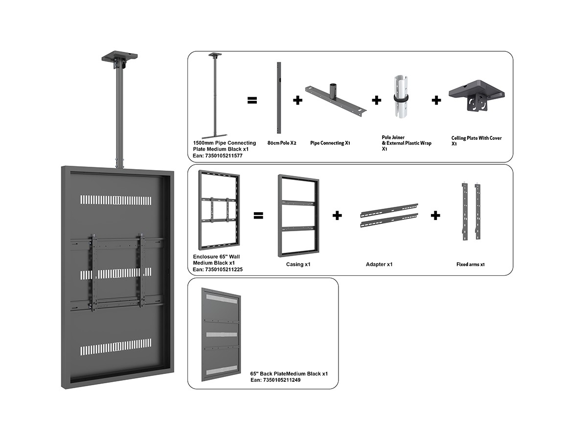 Product code:M Pro Series Enclosure 65" Ceiling Medium Black- Universal 65" display enclosure to protect from theft - design- steel cage - black