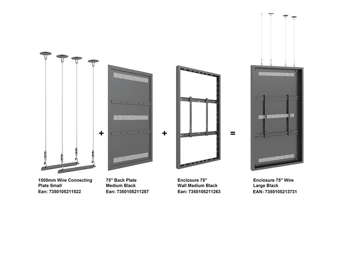 Product code:M Pro Series Enclosure 75" Wire Medium Black - Universal 75" display enclosure to protect from theft - design- steel cage - black