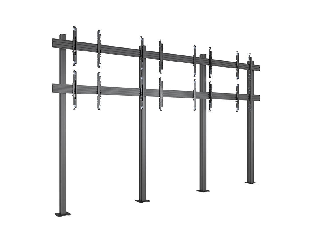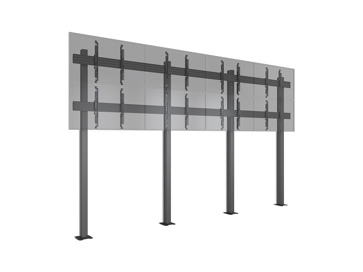 Product code:M Floormount Column Pro 4x2 270 Micro Adjustable - Floor column mount for dual displays, steel, 2.7m height, 4 screens, double side, micro adjustable arms, VESA Max 600x400 - screen size: 32"-65" - black