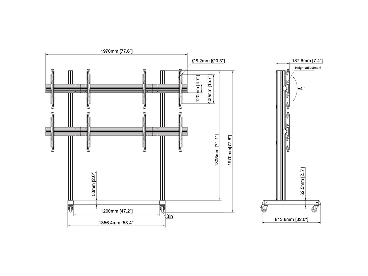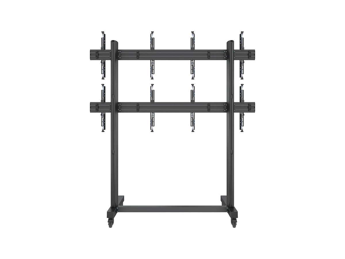 This 2x2 screen dual configuration freestanding video wall cart makes it possible to construct video wall in prominent locations for temporary applications.