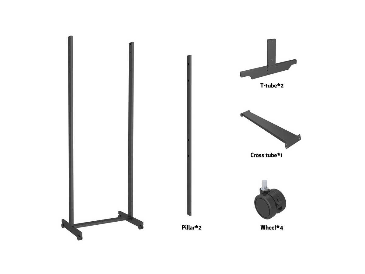 The product adds a wheelbase to the standard floormount base included and can then creates a non-movable base for the M Public Display Stand.