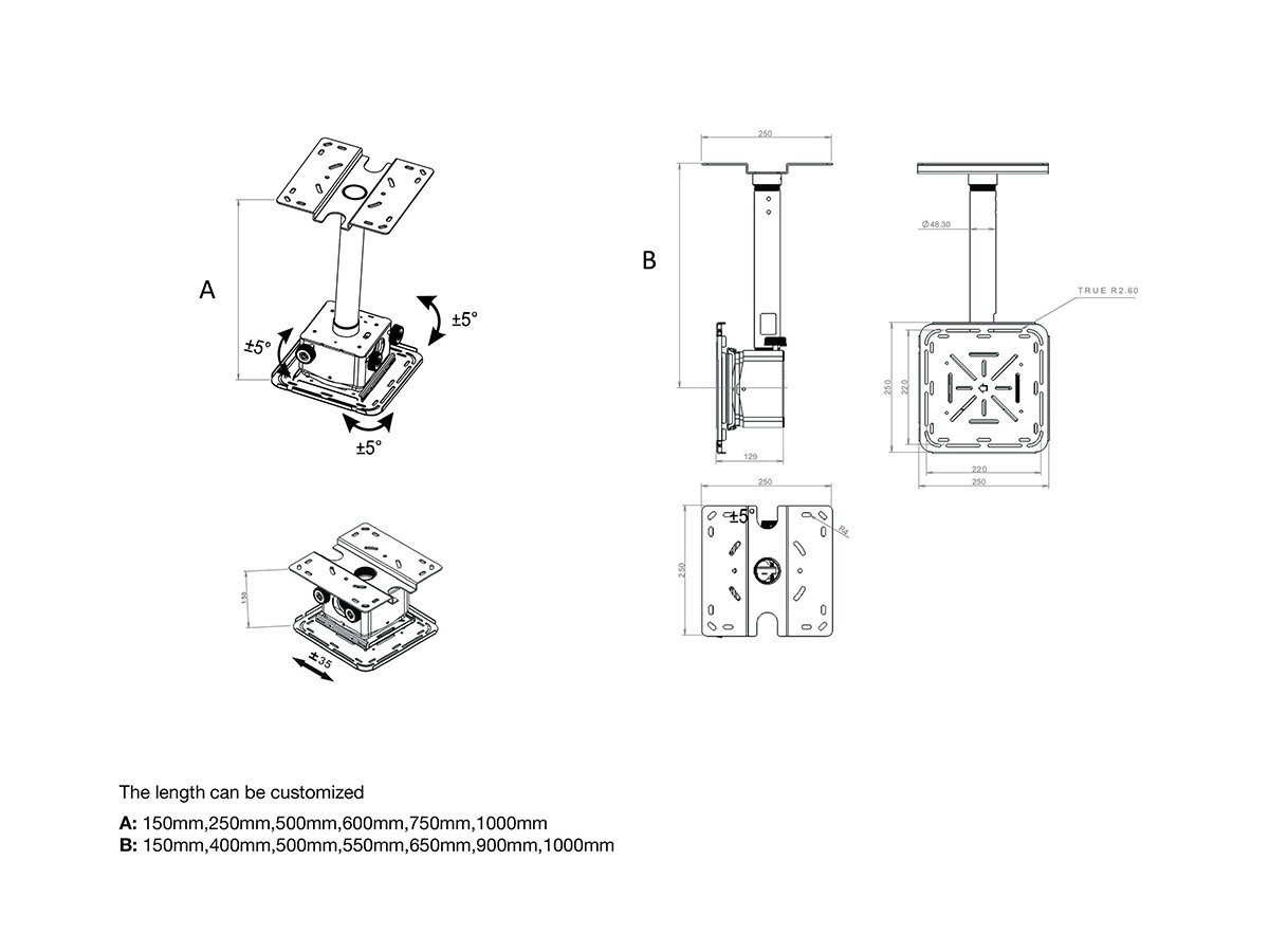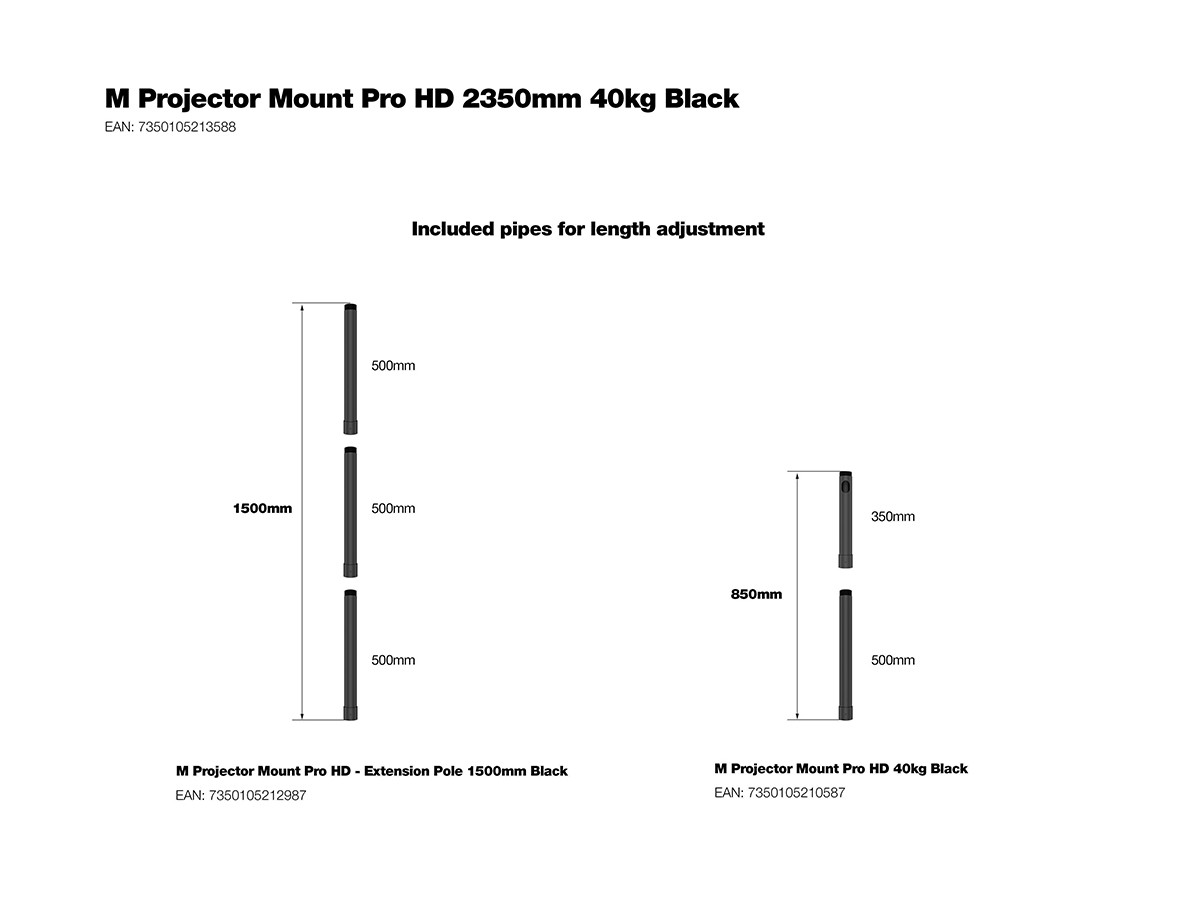 Product code:M Projector Mount Pro HD 2350mm 40kg Black - Ceiling mount for projector - black