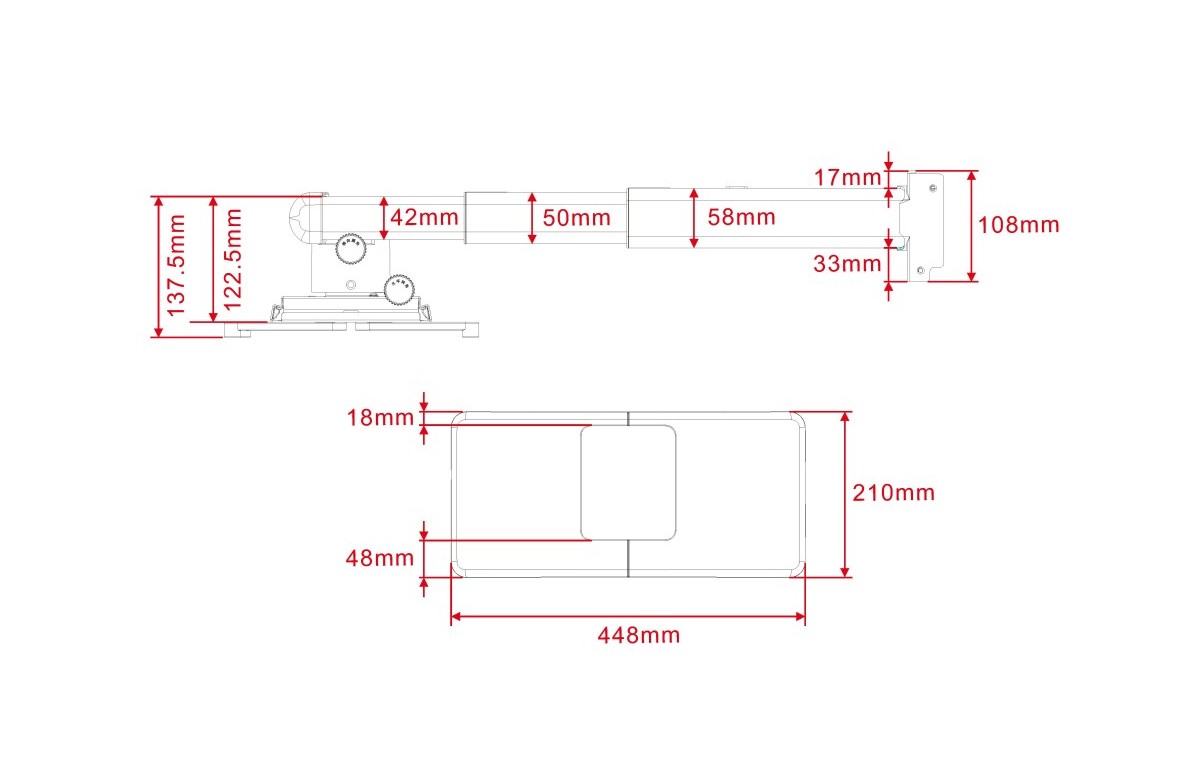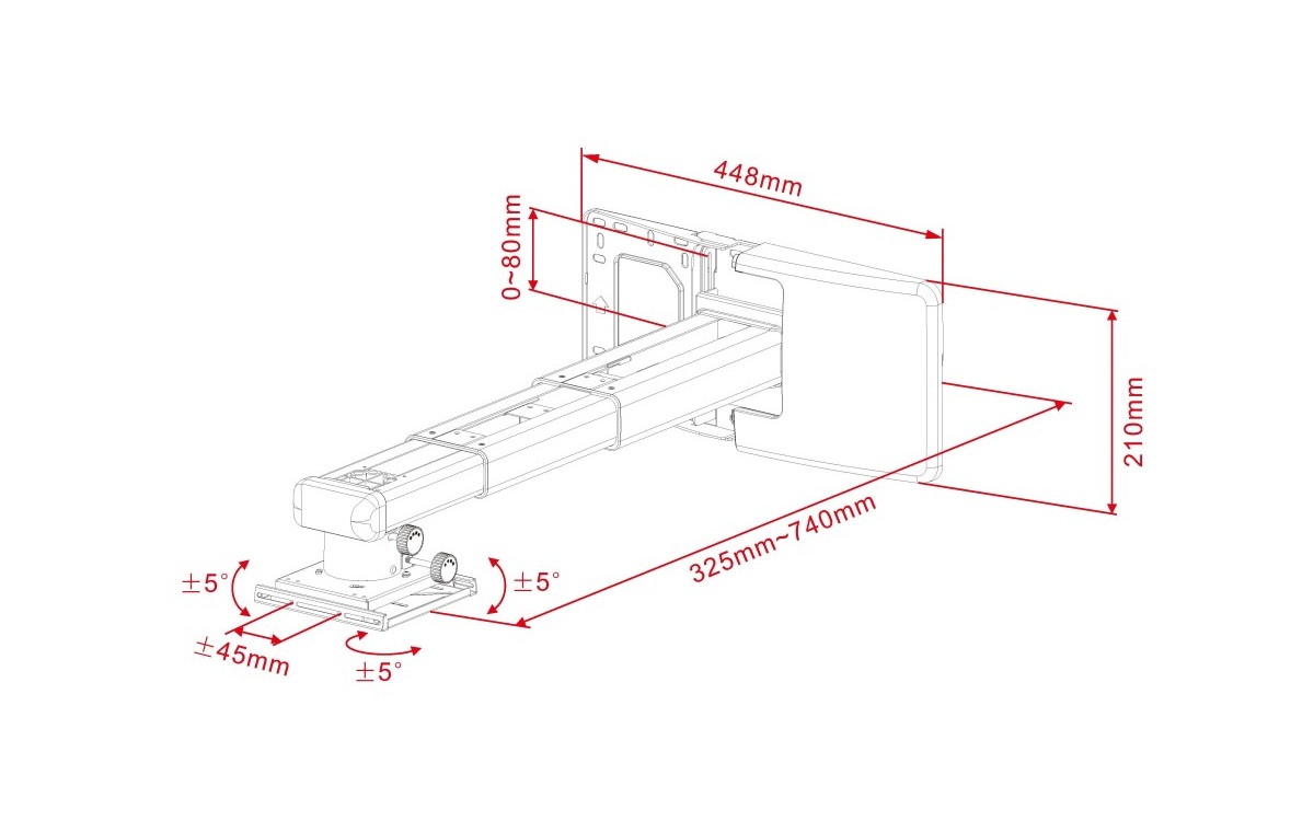 Product code:Multibrackets M Projector Mount Short Throw Deluxe - Wall mount for projector - max load 25kg - length adjustment 325-740 mm - size 448x210x325 mm - white