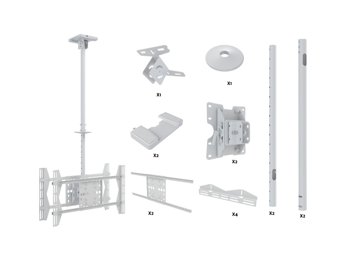 Product code:M Public Ceilingmount Large Back to Back 3000 - Sturdy double display ceiling mount - Landscape or portrait - VESA adapters supporting up to 600x400 - white