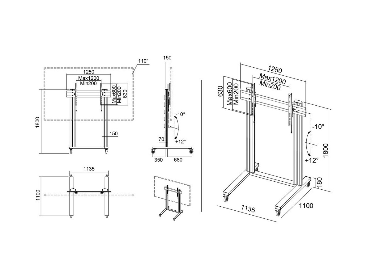 Product code:Multibrackets M Display Stand 180 Dual Pillar Wheelbase - Stand for LCD / LED panel - aluminum - black - screen size: 70" - 110" - mounting interface: up to 1200 x 600 mm - wheel-standing