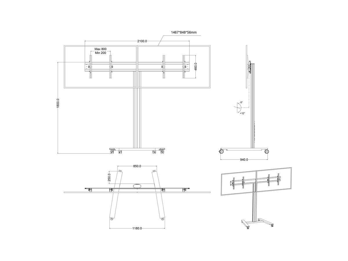 Product code:Multibrackets M Public Display Stand 180 HD Dual - Stand for 2 LCD displays - aluminum - black - screen size: 40" - 60" - mounting interface: 800 x 400 mm
