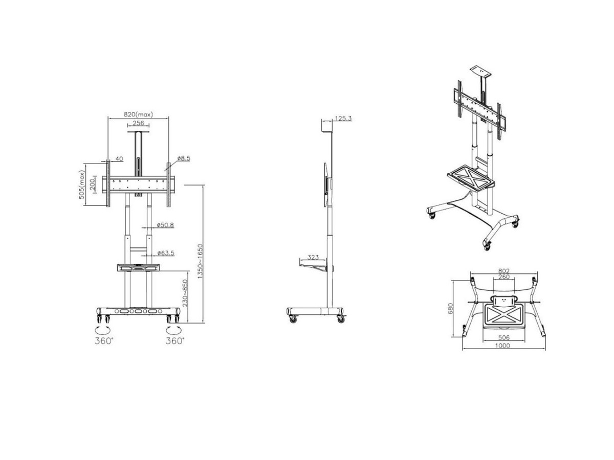 The Multibrackets Floorstand Basic TV Trolley, is a mobile TV -Stand capable of supporting any LCD, LED, or Interactive -display up to a screen size 80”, 90kg in weight and up to 800 x 500mm VESA.