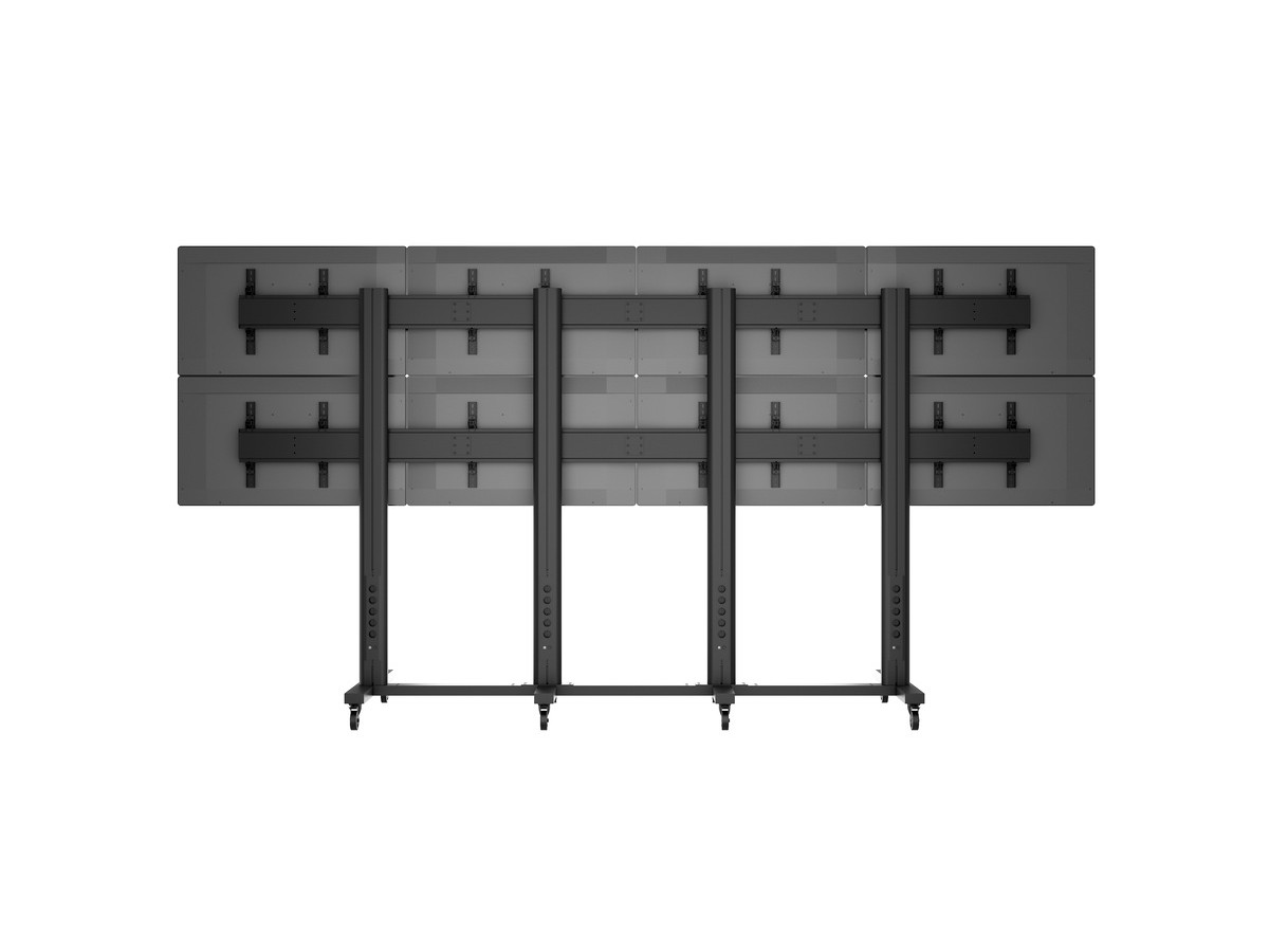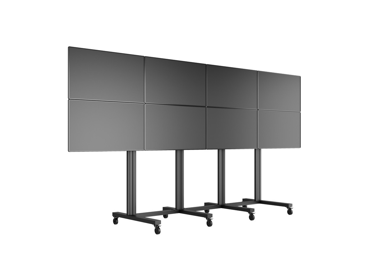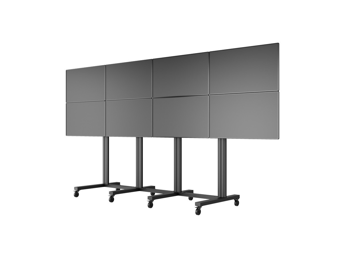 This 8 screen freestanding video wall cart makes it possible to construct video wall in prominent locations for temporary applications.