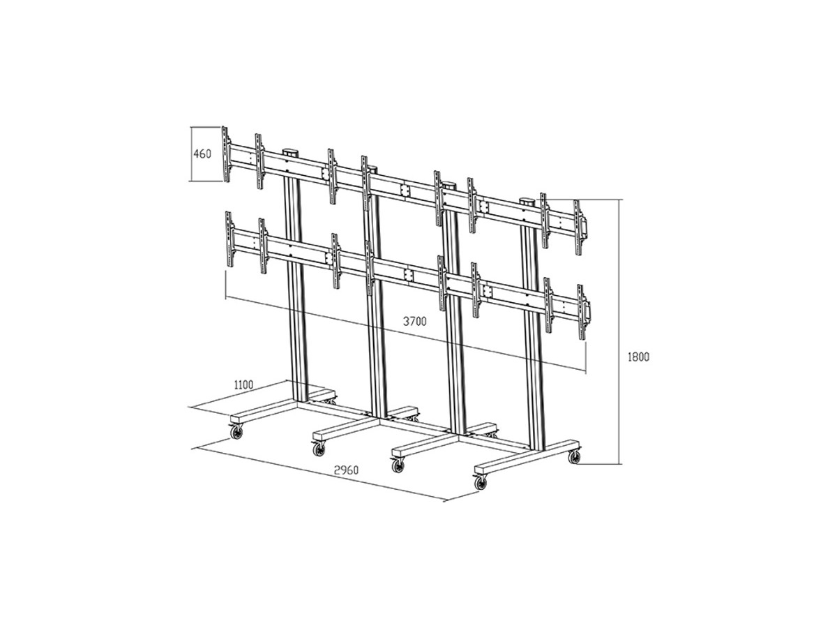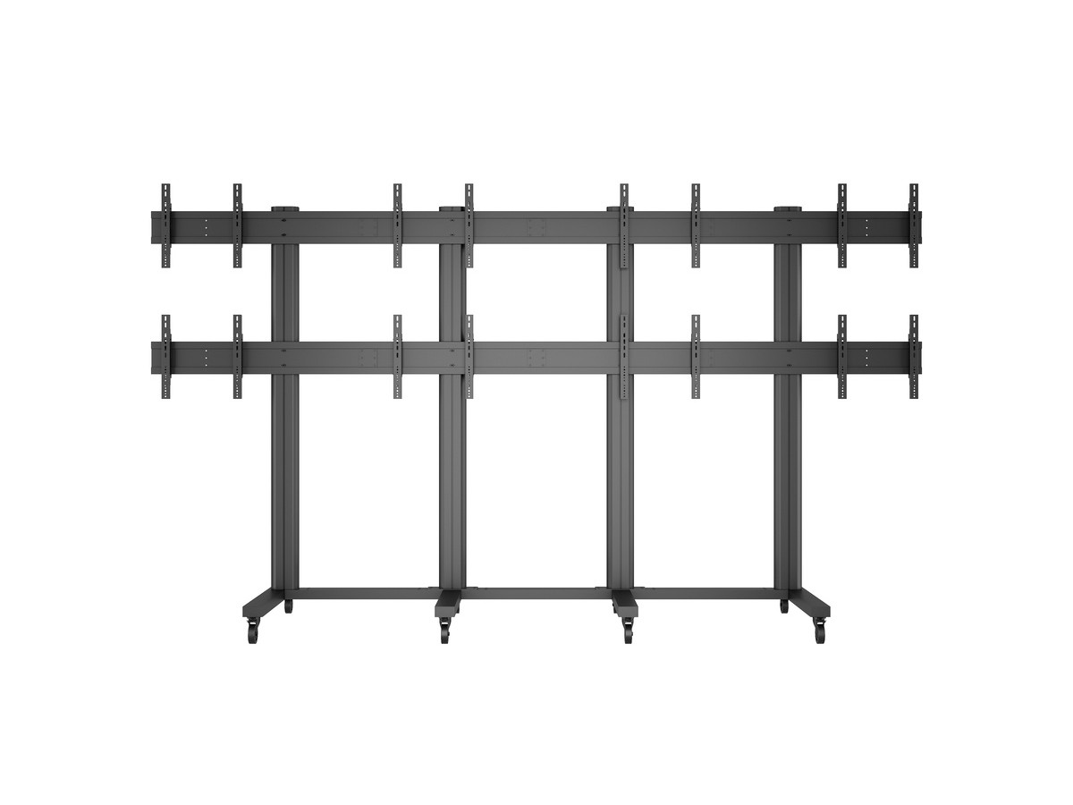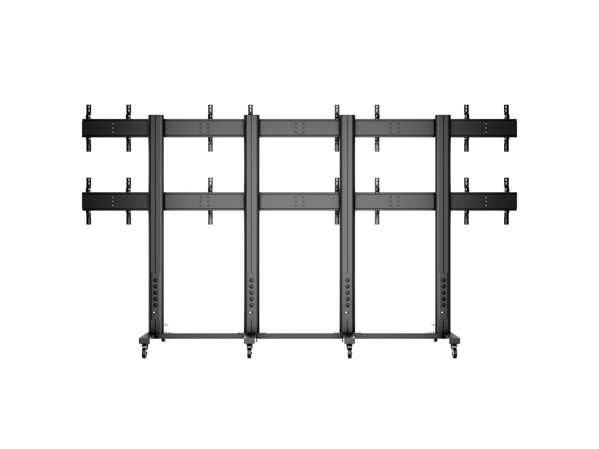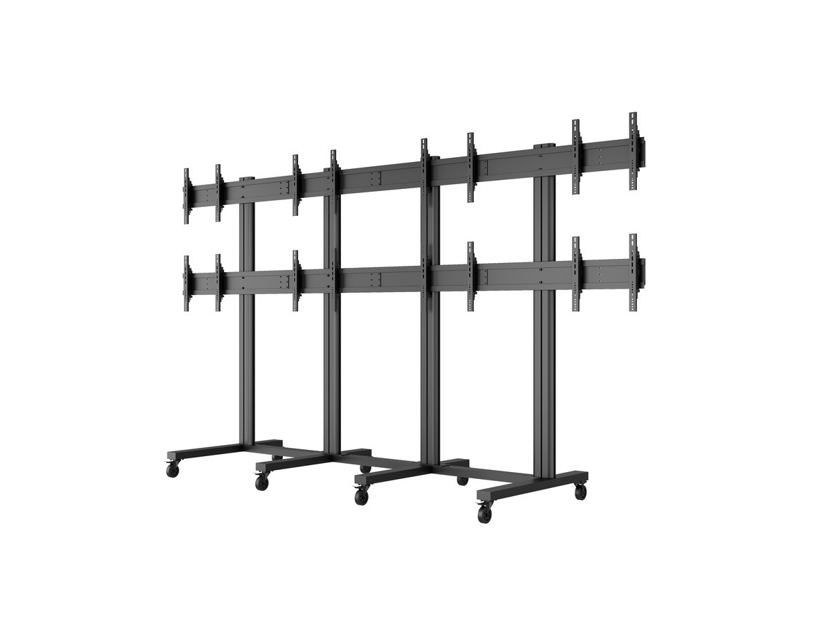 This 8 screen freestanding video wall cart makes it possible to construct video wall in prominent locations for temporary applications.