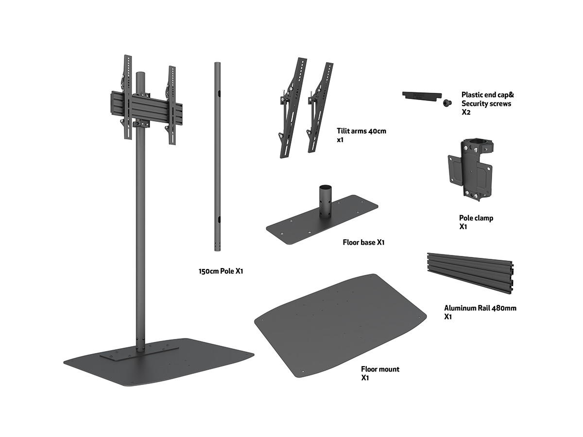 Product code:M Single Pole Floorbase Pro 32"-65" - Floorstand mount for LED display, steel, 1.5m length, 1 screen, single side, VESA Max 400x400 - screen size: 32"-65" - black
