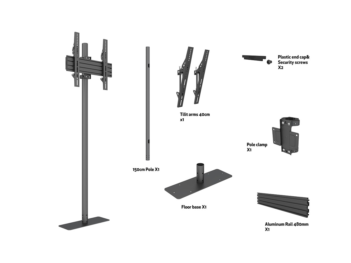 Product code:M Single Pole Floormount Pro 32"-65" - Floorstand mount for LED display, steel, 1.5m length, 1 screen, single side, VESA Max 400x400 - screen size: 32"-65" - black