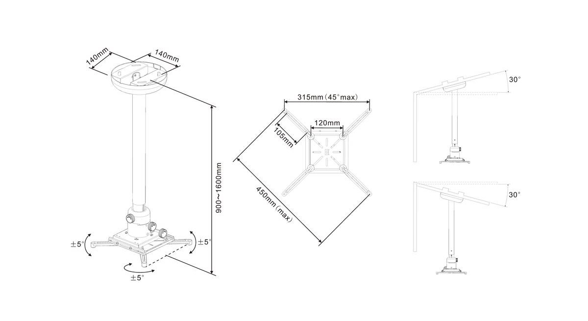 - Projector position from the ceiling min 900 mm - max 1600 mm