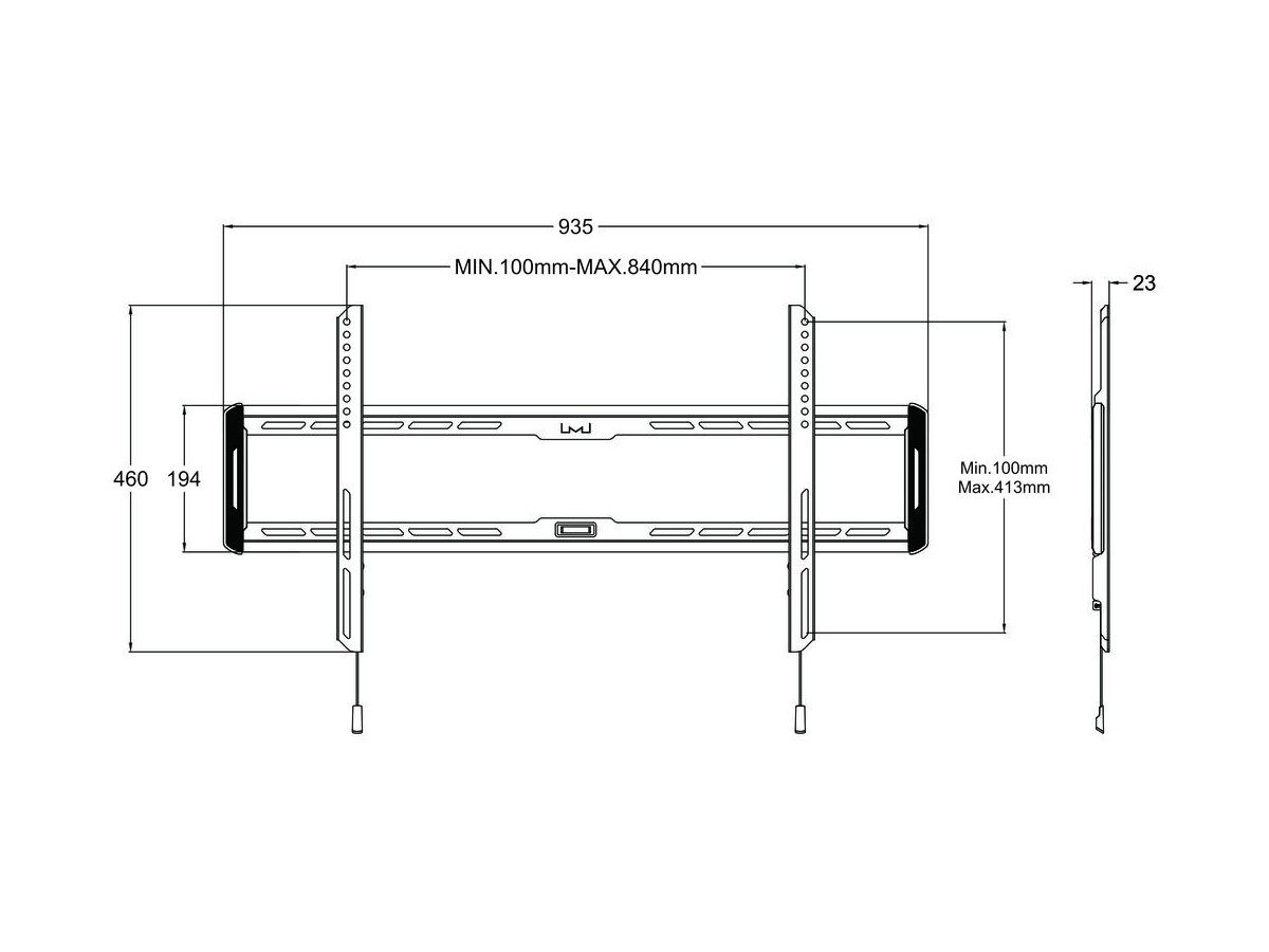 | Universal & VESA standard: | 200x200 300x200 300x300 400x200 400x300 400x400 600x300 600x400 700x400 800x400 mm |