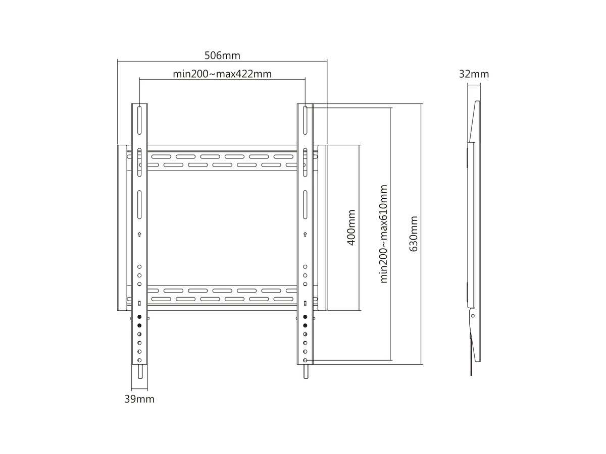 | Universal & VESA standard: | 200x200, 200x300, 300x200, 300x300, 400x200, 400x300, 400x400, 400x600, 600x400, 600x600, 800x400, 800x600, 900x600 mm |