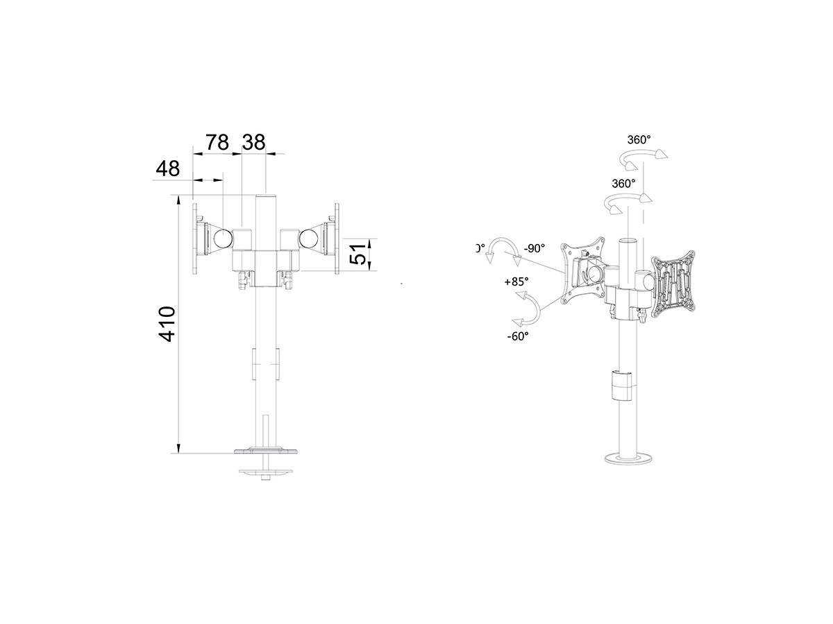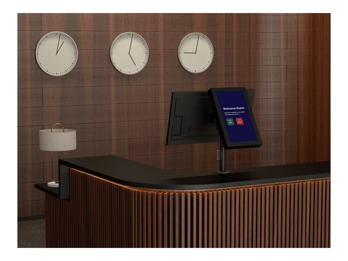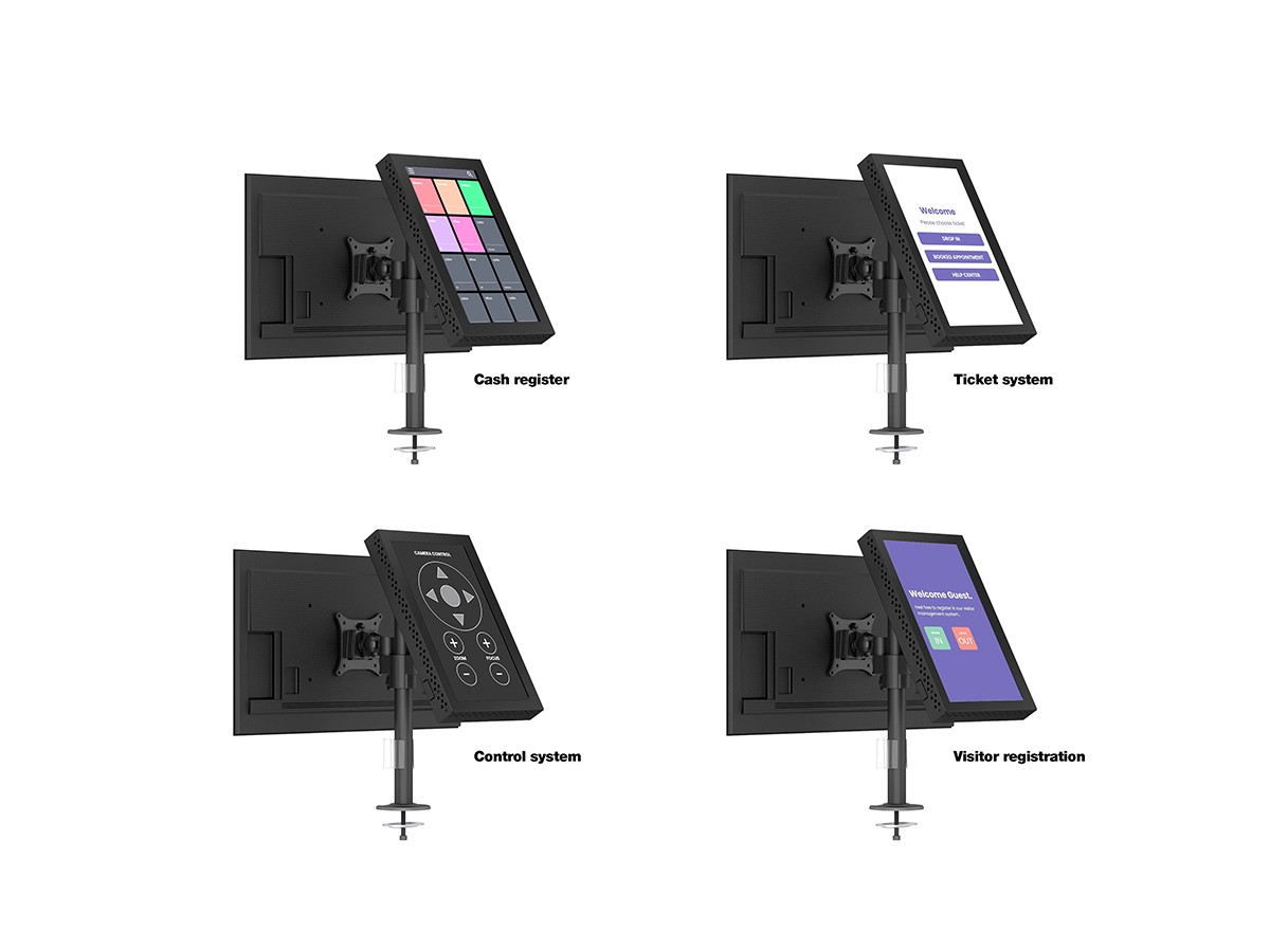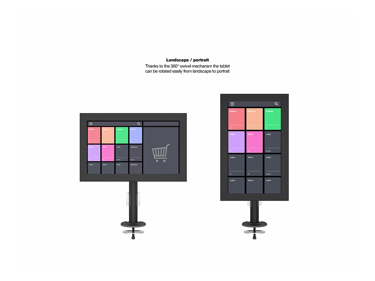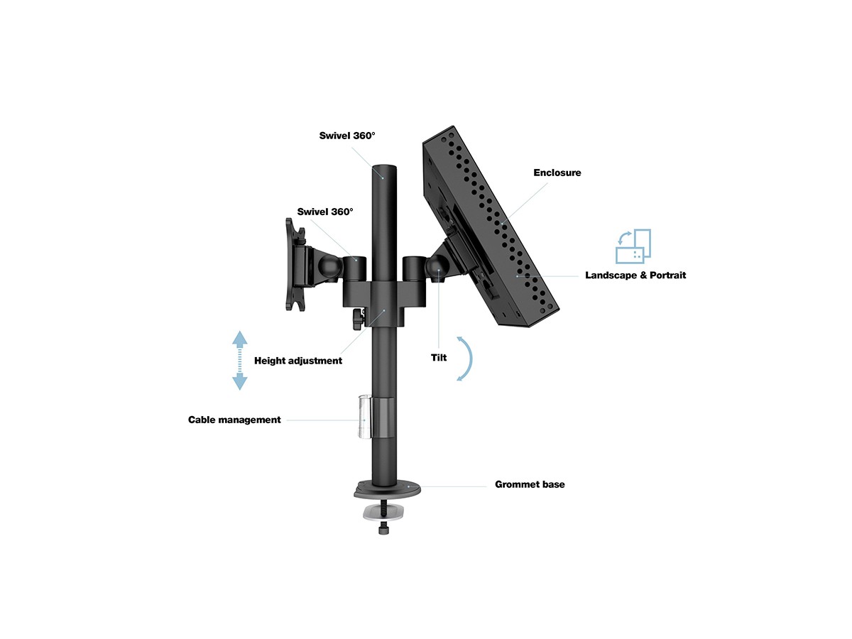 Product code:M VESA Deskmount Dual B2B + Enclosure for Samsung screen QB13R & QB13R-T – Stand for Samsung QBR13R and a monitor – POS - metal construction - tilt: 80 - swivel: 360 – tablet size: 13"- VESA 75/ 100, and a monitor that supports VESA 75x75, 100x100