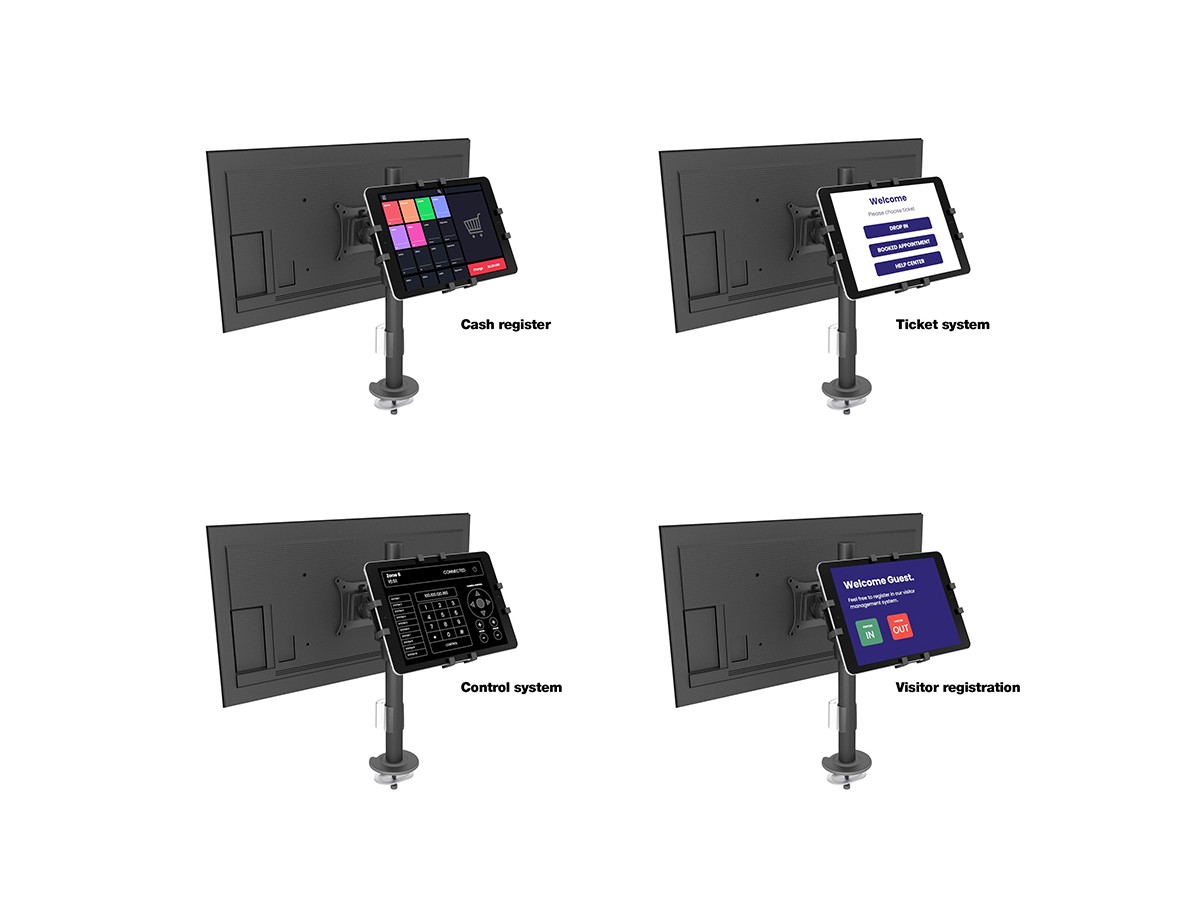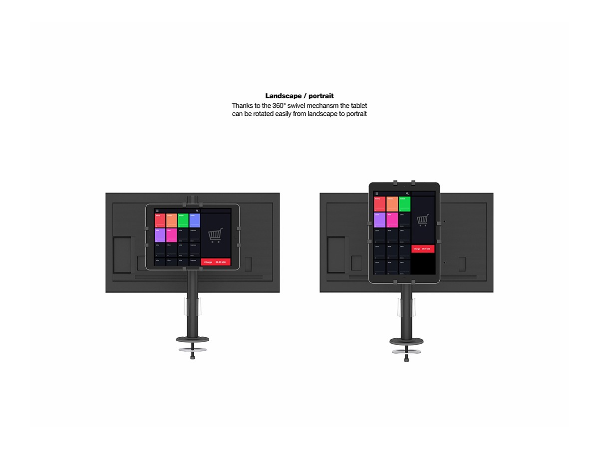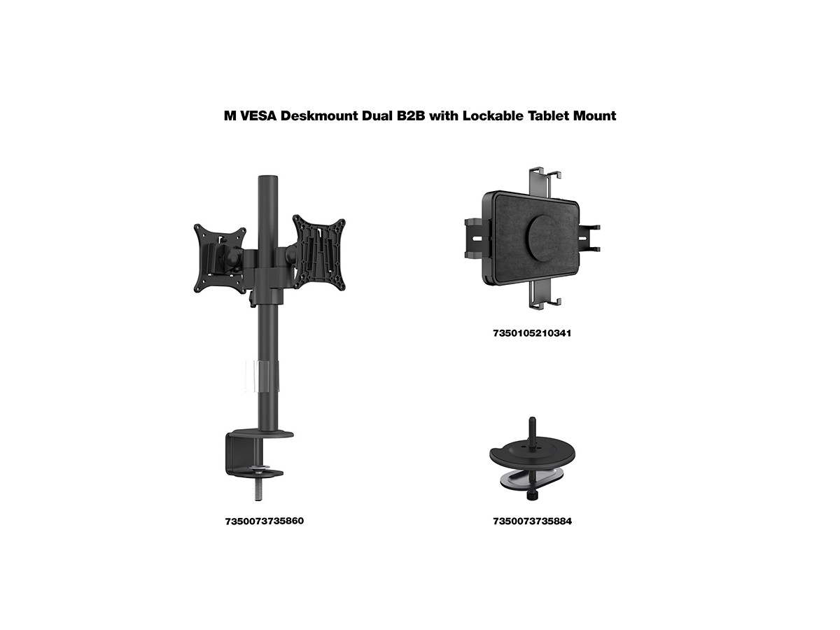 Product code:M VESA Deskmount Dual B2B with Lockable Tablet Mount – Back to Back monitor mount for iPad & tablets and monitor – POS - metal construction - tilt: 80 - swivel: 360 – A tablet size: 7" to 13", and a monitor that supports VESA 75x75, 100x100
