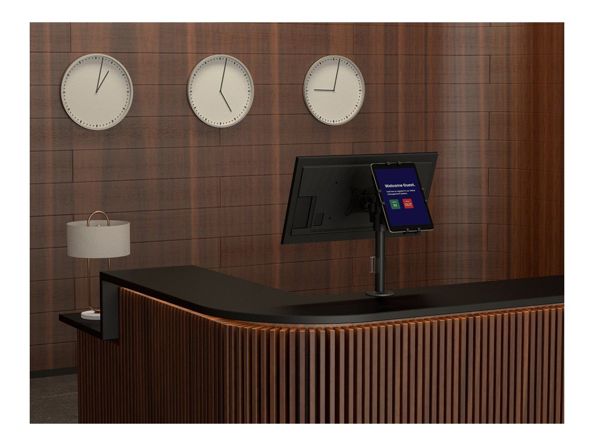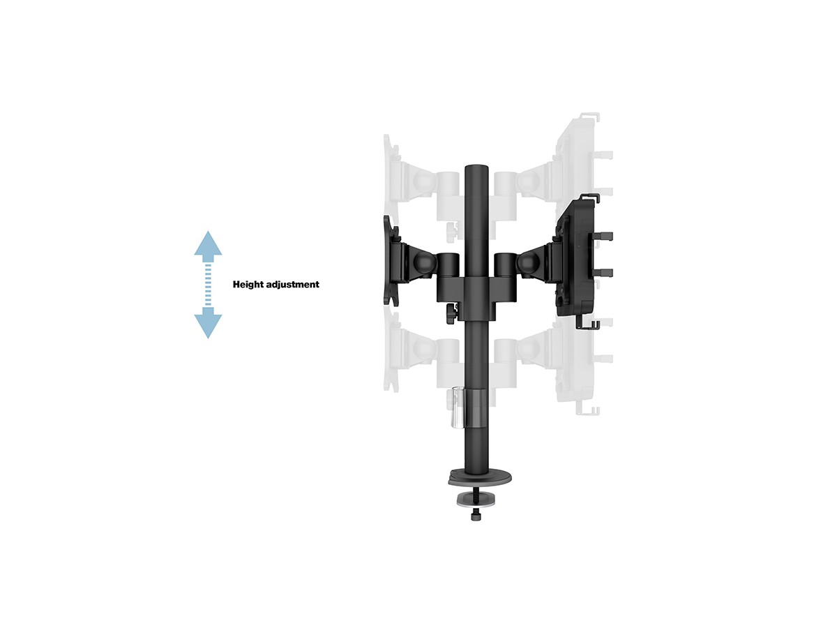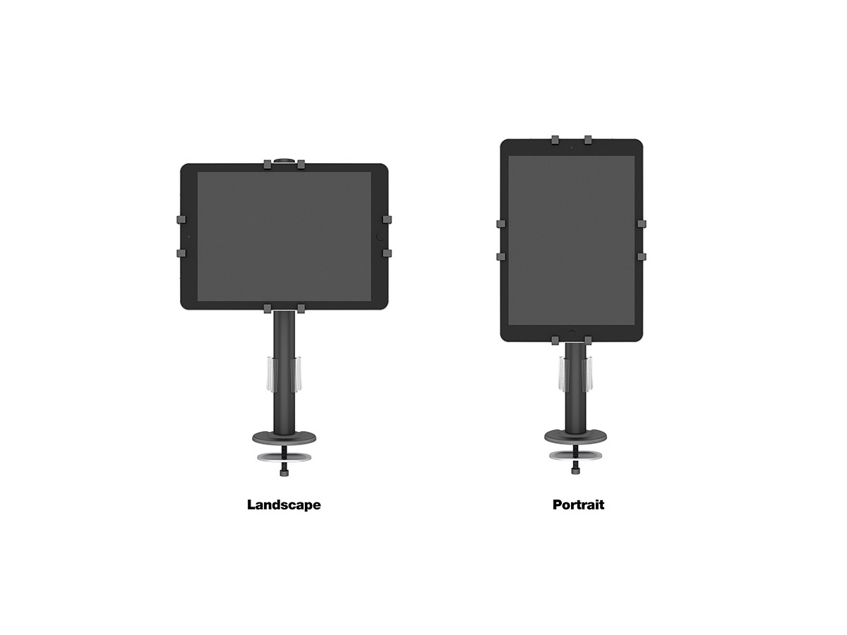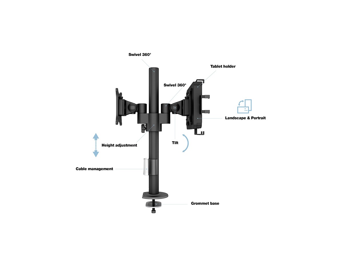Product code:M VESA Deskmount Dual B2B with Lockable Tablet Mount – Back to Back monitor mount for iPad & tablets and monitor – POS - metal construction - tilt: 80 - swivel: 360 – A tablet size: 7" to 13", and a monitor that supports VESA 75x75, 100x100