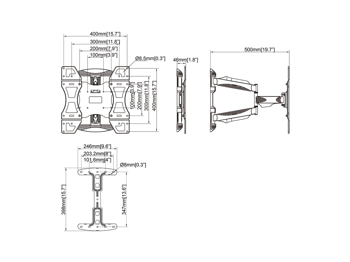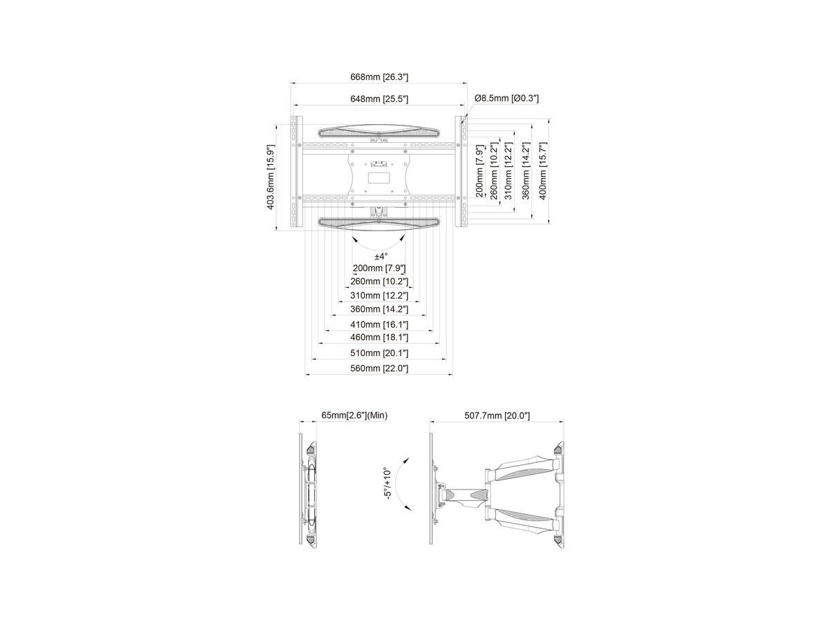 | Turn: | Up to -45° ~ +45°, screen size dependant |
