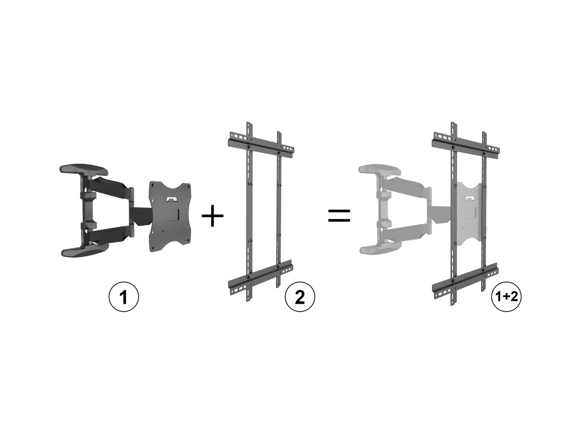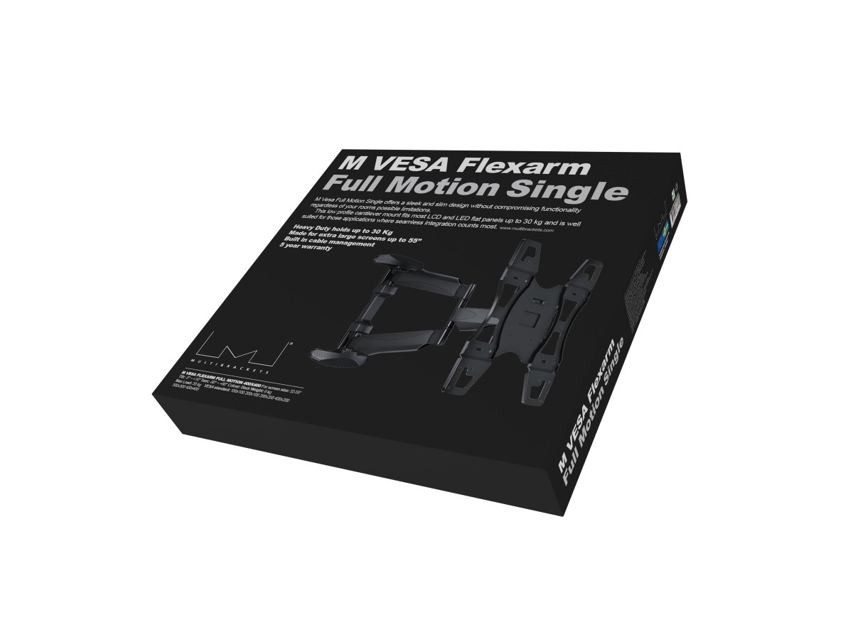 M VESA Flexarm Full Motion Single is suitable for a wide range of screens sized 32” and up to 55” mounted in portait position. The VESA standards that are supported by this mount is 100 / 200 / 300/ 400/ 600. This means that M VESA Flexarm Full Motion Single is suitable for most of the VESA standards, including the rare ones. While the arm in landscape can hold up to 30kg we do recommend a maxload of 20kg in portrait mode.