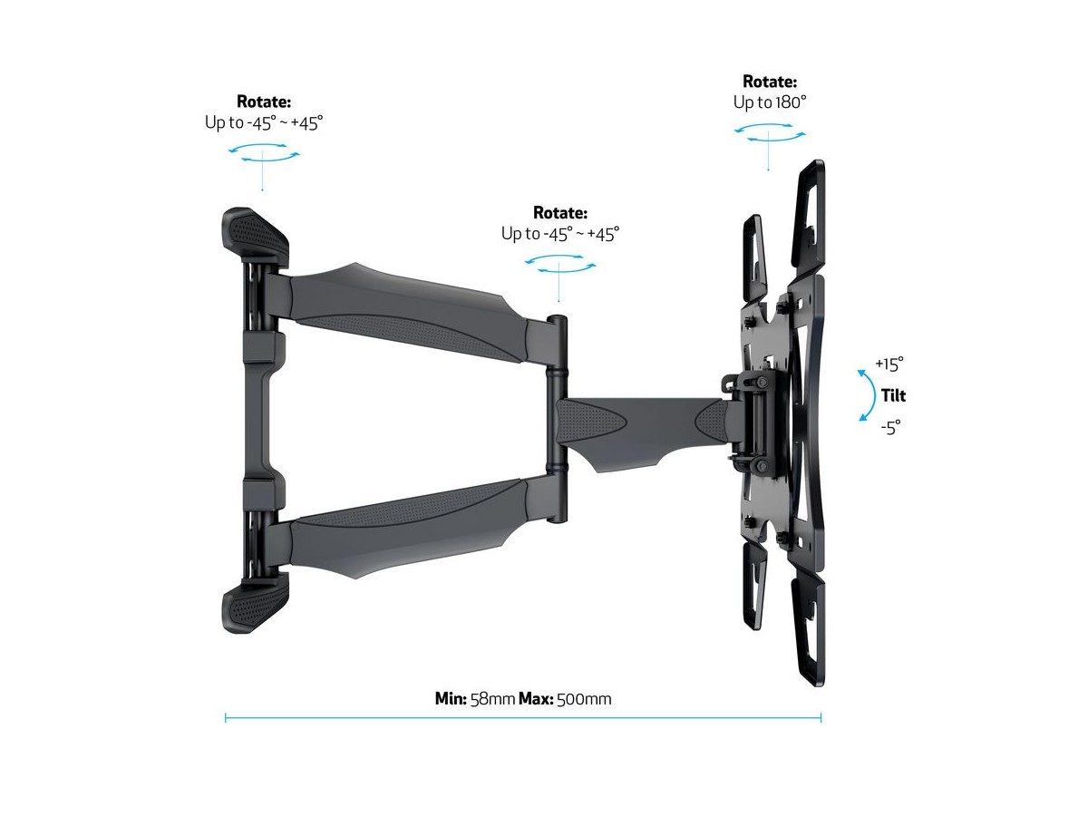 - Turn effortlessly up to -45°~+45° depending on screen size to view from the right angle