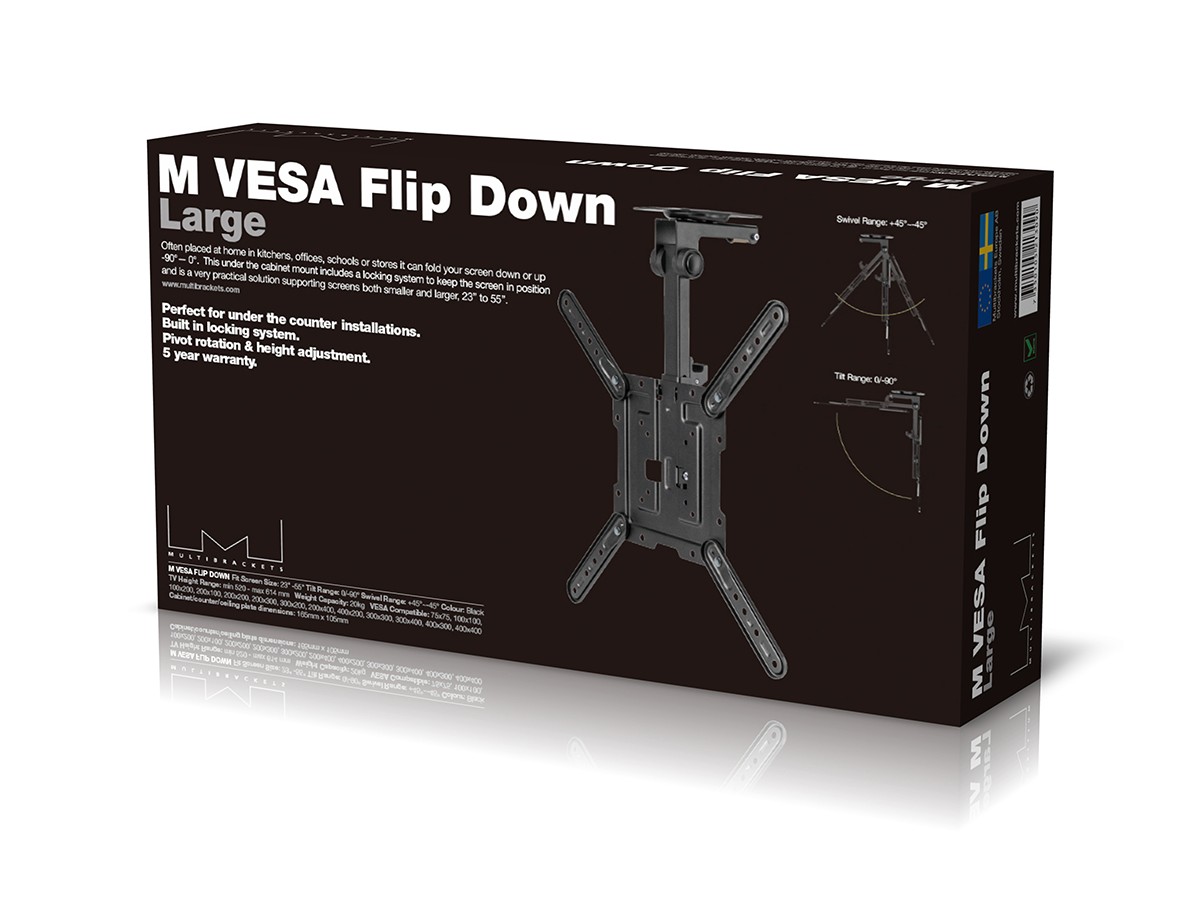 Product code:Multibrackets M VESA Flip Down Large - Mounting kit ( mounting plate, mounting arm ) for Displays - black - screen size: 23" - 55" - ceiling mountable, under-the-cabinet, counter