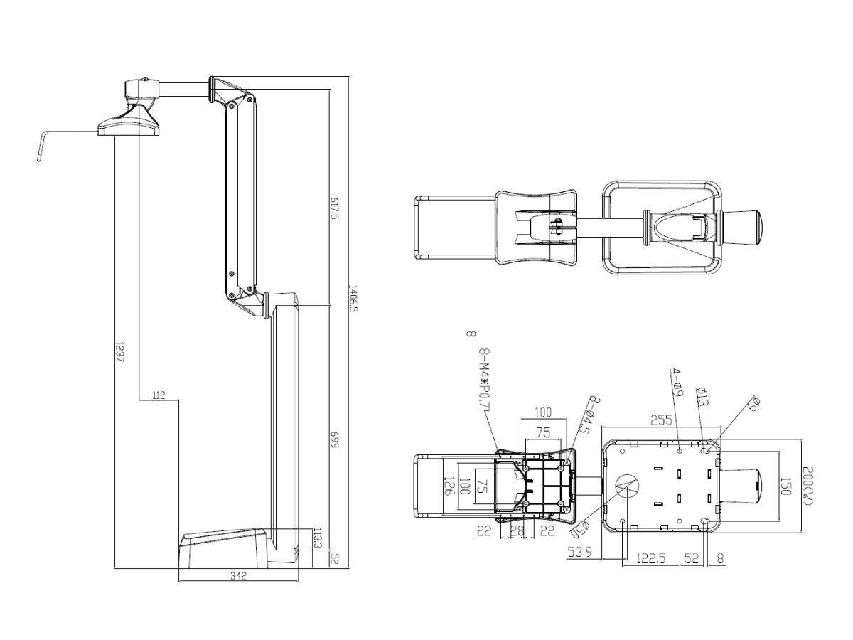 Product code:M VESA Full Motion Medical Arm - with flexible 4 joint arms, for medical environments, VESA 75, 100, monitor weight 2.5-6.5kg, wallmount - white