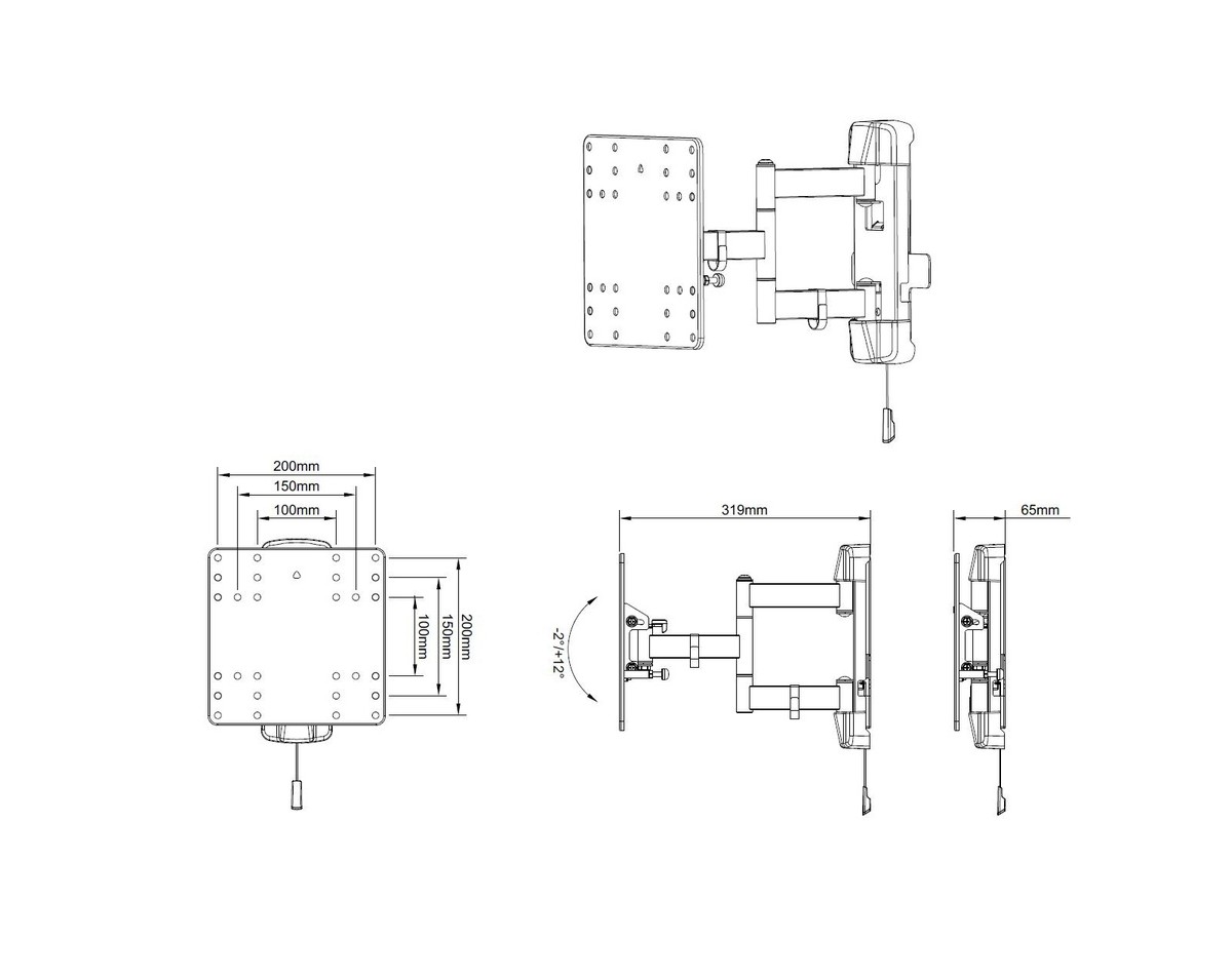 | VESA standard: | 100x100, 100x150, 100x200, 150x100, 150x150, 200x100, 200x150, 200x200 |
