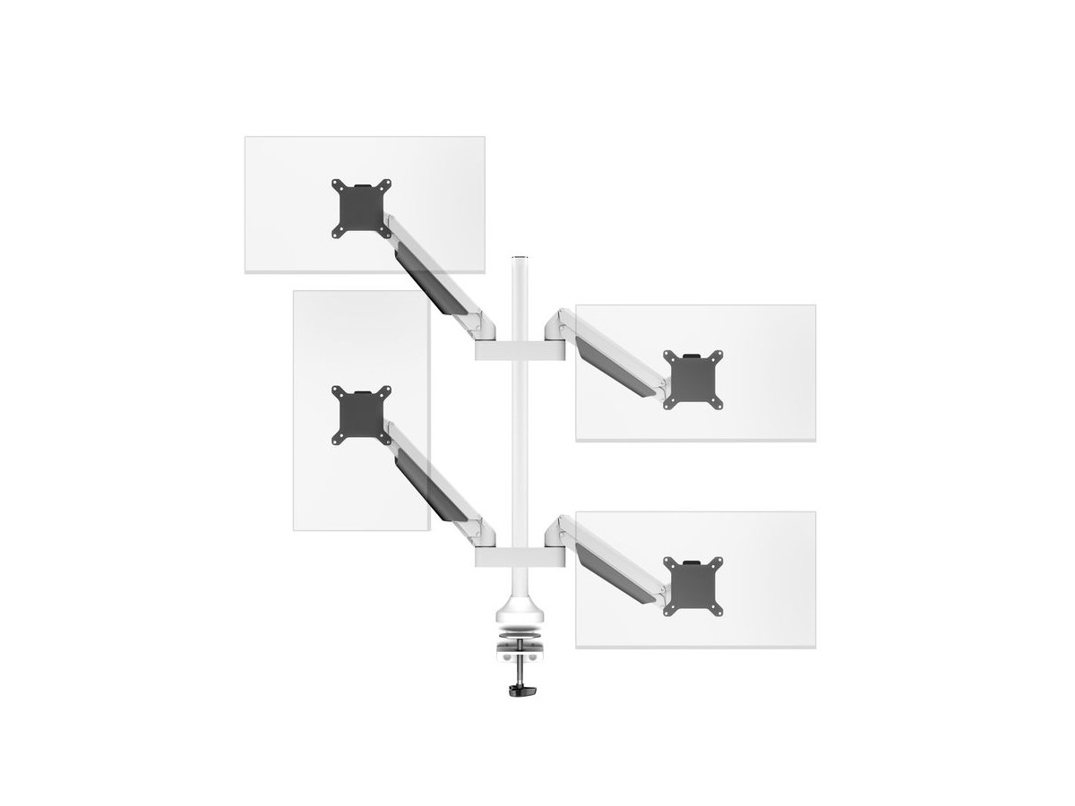The Quad triple jointed gas suspended monitorarm was designed by Multibrackets to optimize your productivity and help reducing strain on neck, back and eyes.
