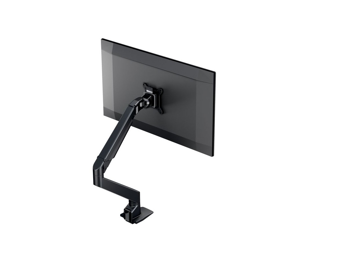 The M VESA Gas Lift Arm HD is made out of a durable aluminum construction and uses a gas driven suspension technique. This makes the screen "float" and it can then be moved with near zero effort. Sleek and streamlined, the M VESA Gas Lift Arm Single HD frees up space and allows positioning of your display for greater productivity. The unique counterbalance gas technology provides smooth adjustment in any direction. Easy move the screen from landscape to portrait position or move the screen close to the desk, high up, matching almost any wanted working position imaginable.