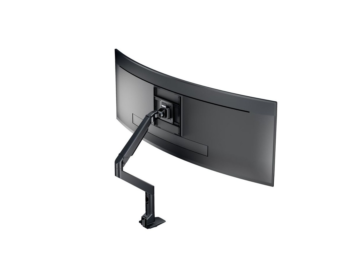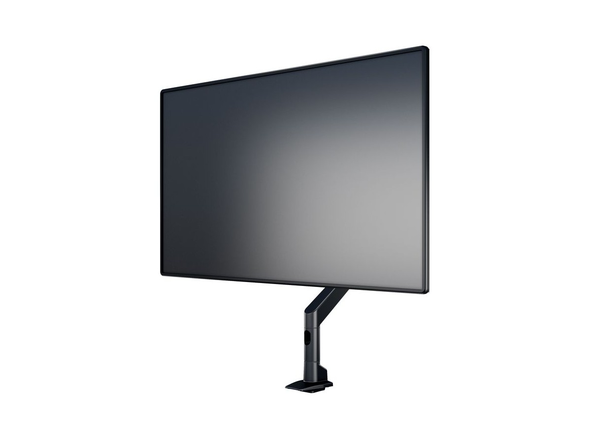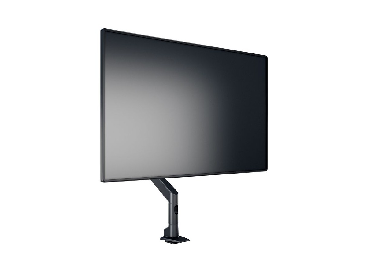 The M VESA Gas Lift XL HD Single Black is made out of a durable aluminum construction and uses a gas driven suspension technique. This makes the screen "float" and it can then be moved with near zero effort. Sleek and streamlined, the M VESA Gas Lift XL Single Black HD frees up space and allows positioning of your display for greater productivity. With a maxload of up to 18kg even very big monitors can be used. The height clearance is 615 mm above the desk. Rotation function is not used for widescreen or ultrawide screen monitors. The unique counterbalance gas technology provides smooth adjustment in any direction. Easy move the screen from landscape to portrait position or move the screen close to the desk, high up, matching almost any wanted working position imaginable.