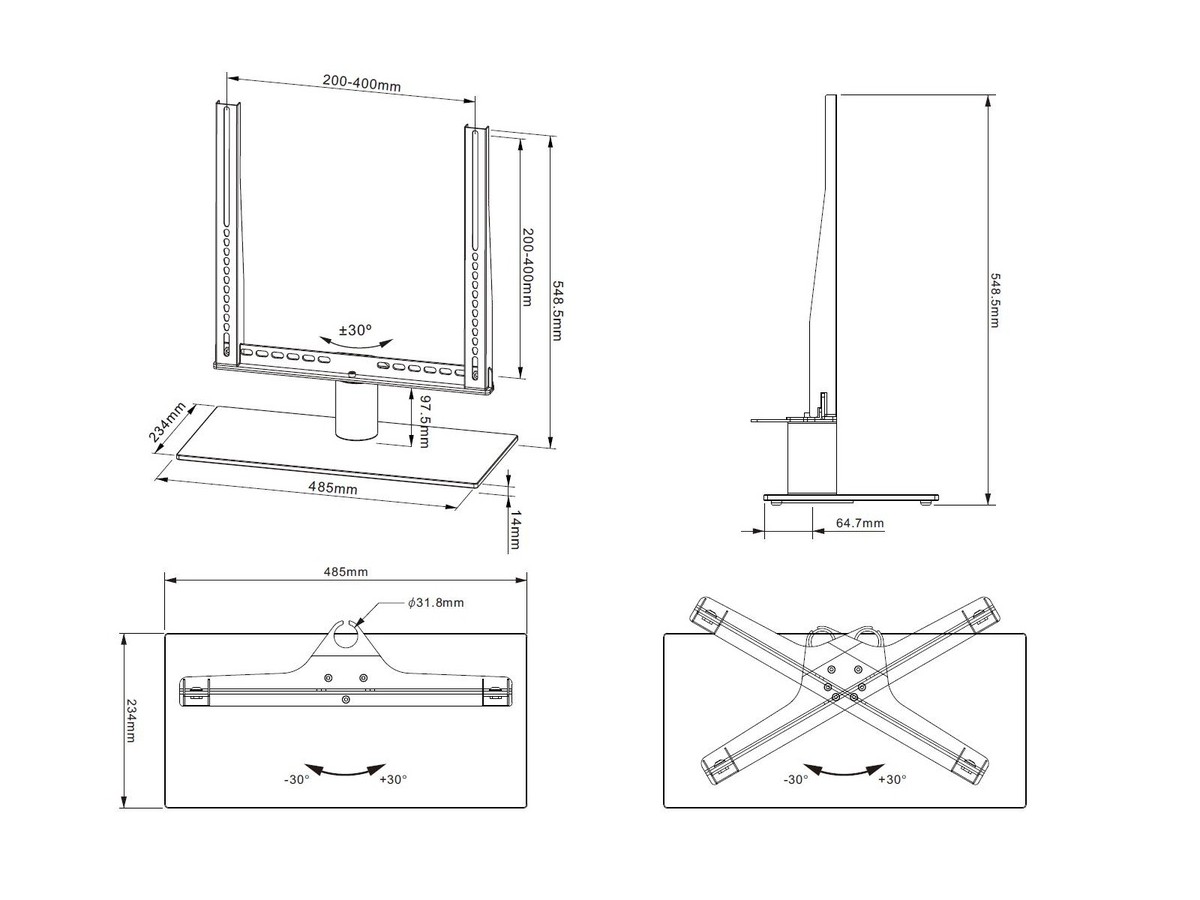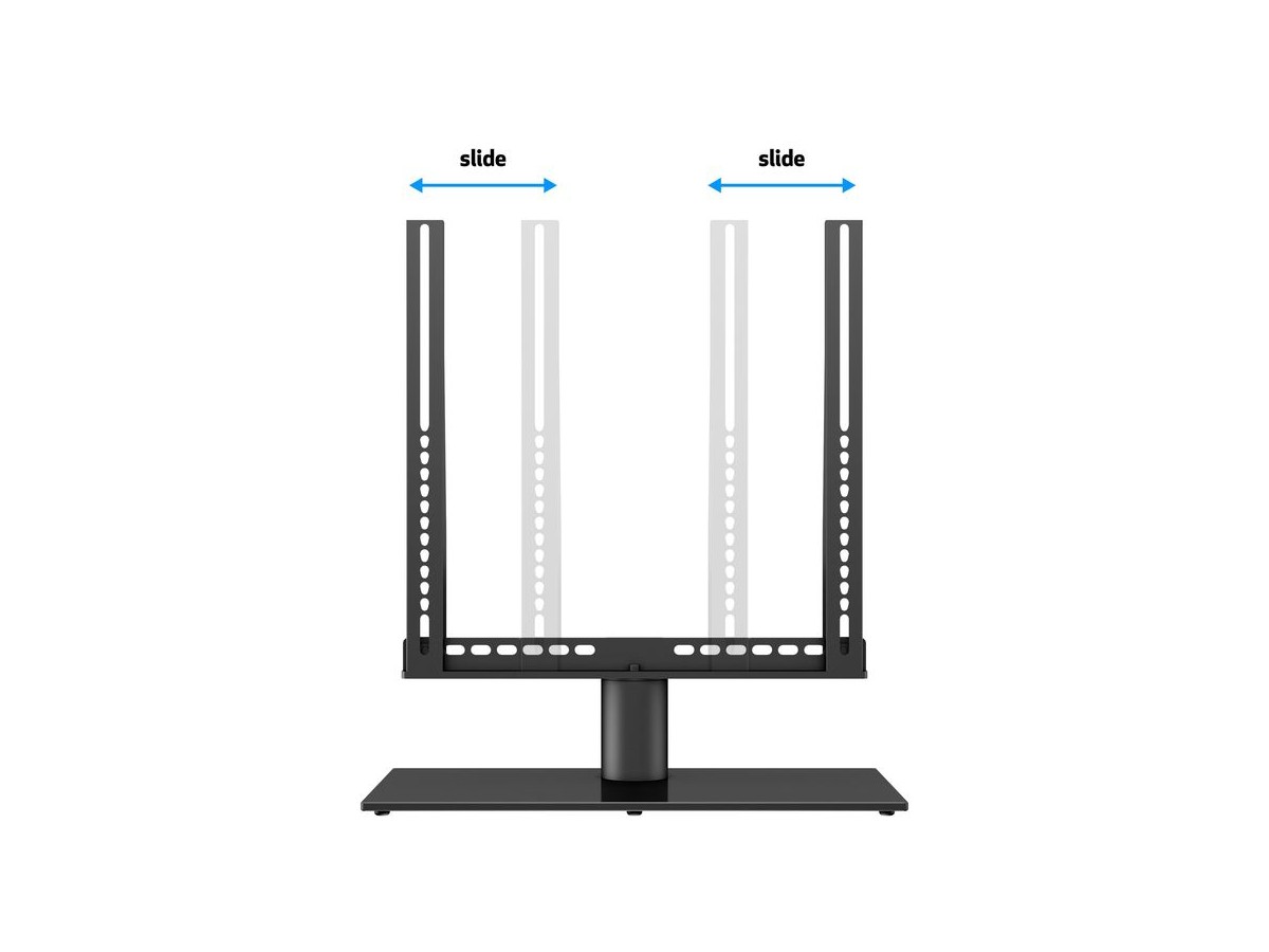 Perfectly placed on a table or media furniture, it has a sophisticated built in left and right turn feature inside its tubular pillar. The M VESA Tablestand turns your TV screen up to 30 degrees, left or right. This allows you to watch your TV in an optimal angle from your TV sofa, kitchen, favorite comfy chair or anywhere else the turned reaches its viewing angle. The M VESA Tablestand Turn optimizes your TV angle, it makes the most out of your living room setting and can create a smooth functionality for your home or office environment.