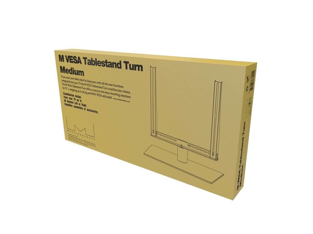 Multibrackets new M VESA Tablestand Turn offers a secure and easy mounting solutions for TVs weighing up to 30 kg and MAX VESA 400x400. The M VESA Tablestand Turn is the perfect solution getting a high quality designed Tablestand for your TV and will blend in perfectly. The nice Scandinavian design with its discreet yet functional outlook makes it a perfect partner for your Slim LCD or LED TVs.