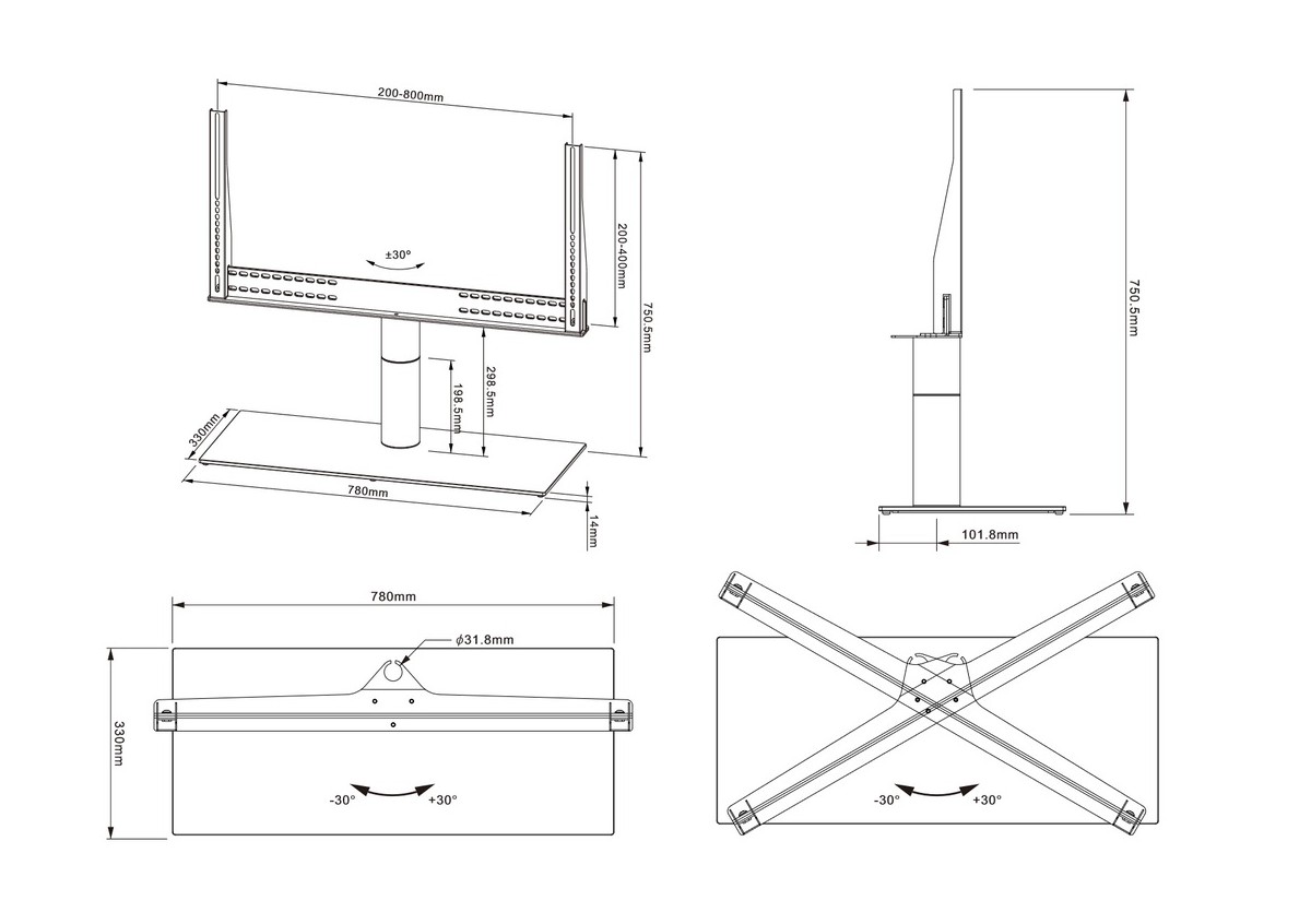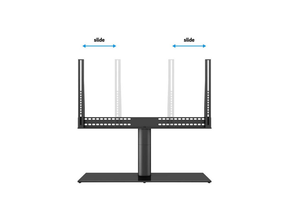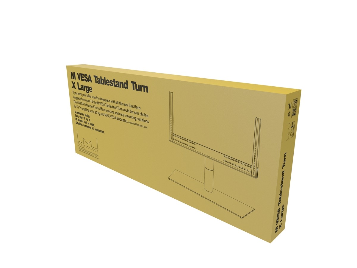 Perfectly placed on a table or media furniture, it has a sophisticated built in left and right turn feature inside its tubular pillar. The M VESA Tablestand turns your TV screen up to 30 degrees, left or right. This allows you to watch your TV in an optimal angle from your TV sofa, kitchen, favorite comfy chair or anywhere else the turned reaches its viewing angle. The M VESA Tablestand Turn optimizes your TV angle, it makes the most out of your living room setting and can create a smooth functionality for your home or office environment.