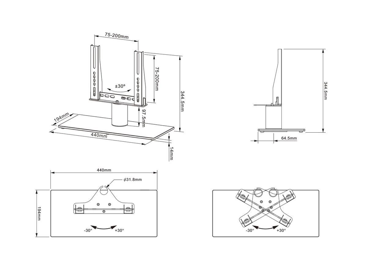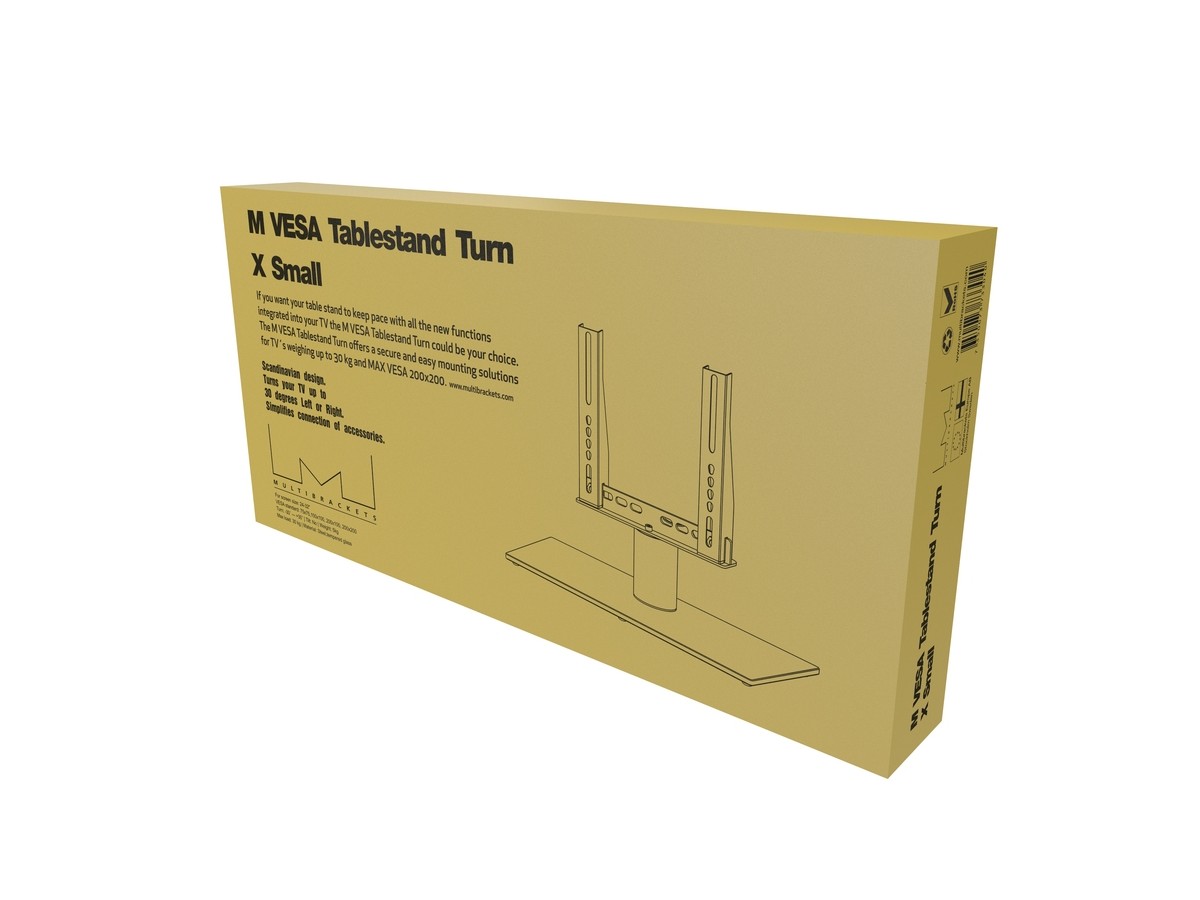 Multibrackets new M VESA Tablestand Turn offers a secure and easy mounting solutions for TVs weighing up to 30 kg and MAX VESA 200x200. The M VESA Tablestand Turn is the perfect solution getting a high quality designed Tablestand for your TV and will blend in perfectly. The nice Scandinavian design with its discreet yet functional outlook makes it a perfect partner for your Slim LCD or LED TVs.